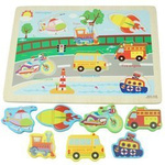 Drewniana układanka puzzle drewniane auta pojazdy samochody