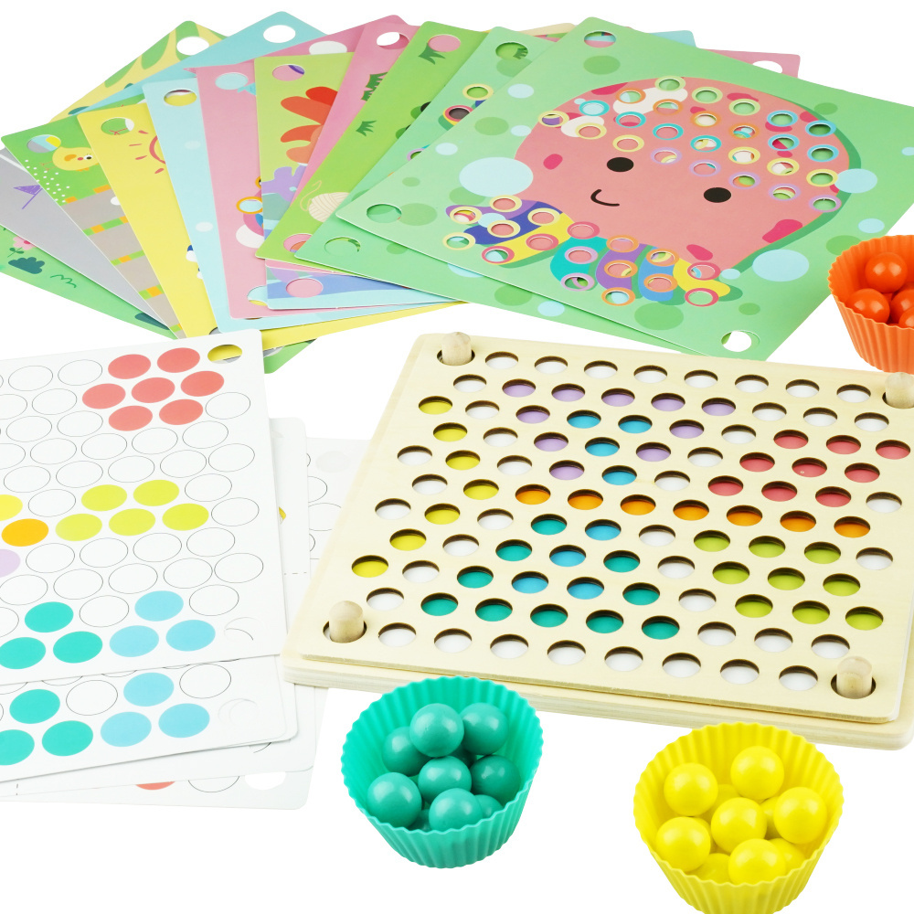 Zabawa polega na układaniu obrazków za pomocą wielu kuleczek o różnych kolorach.