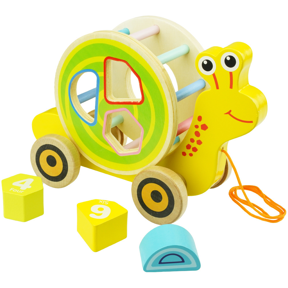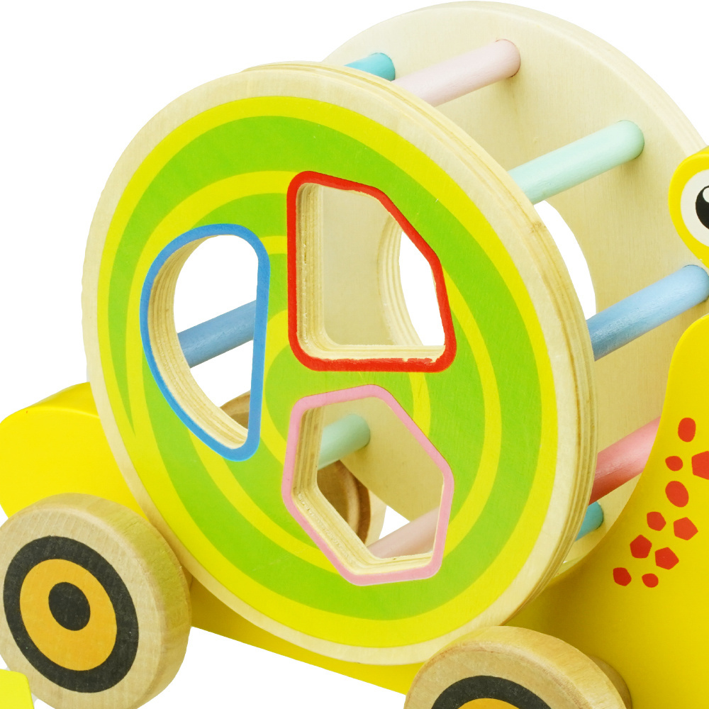 Idealna zabawka do ciągnięcia dla Twojego malucha, wygodny sznurek jest wystarczająco długi, aby łatwo go pociągnąć, gdy posortowane klocki się obracają