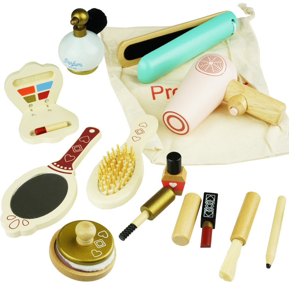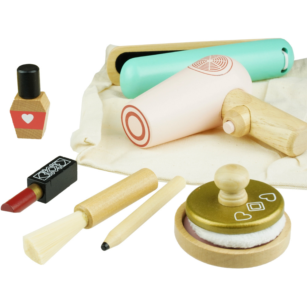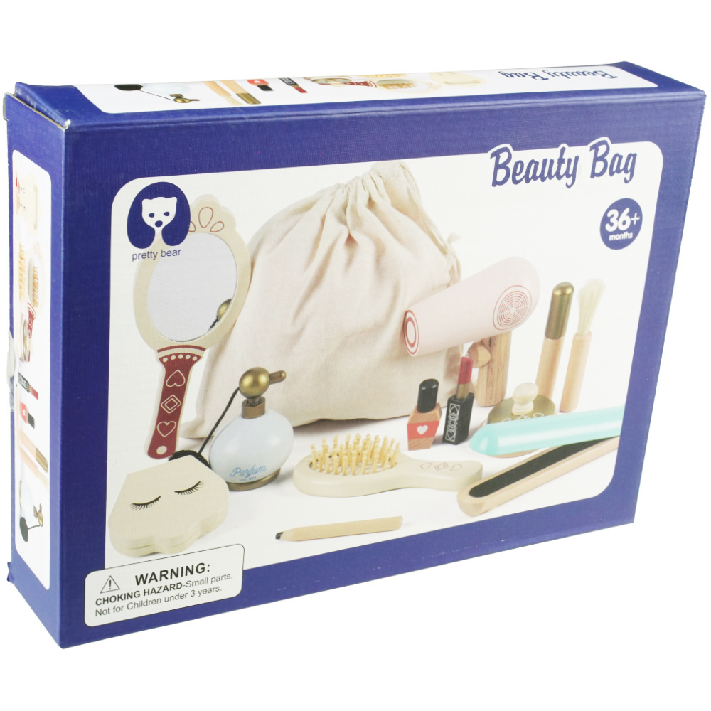 Dziewczynki mogą bawić się we fryzjera, ponieważ w zestawie znajduje się szczotka, suszarka i lokówka. Dzięki temu mała fryzjerka może zrobić niesamowitą fryzurę swojej koleżance lub siostrze. Zestaw może również służyć małej kosmetyczce. Wśród akcesoriów znajdziemy także szminka oraz lakier do paznokci, dzięki którym dziecko może stworzyć idealny make-up i manicure. Dodatkowo do zestawu dołączone są  cienie do powiek, tusz do rzęs, kredka do oczu, puderniczkę, pędzelek, lusterko oraz perfumy. Całość można zapakować w lniany woreczek i bezpiecznie przechowywać.