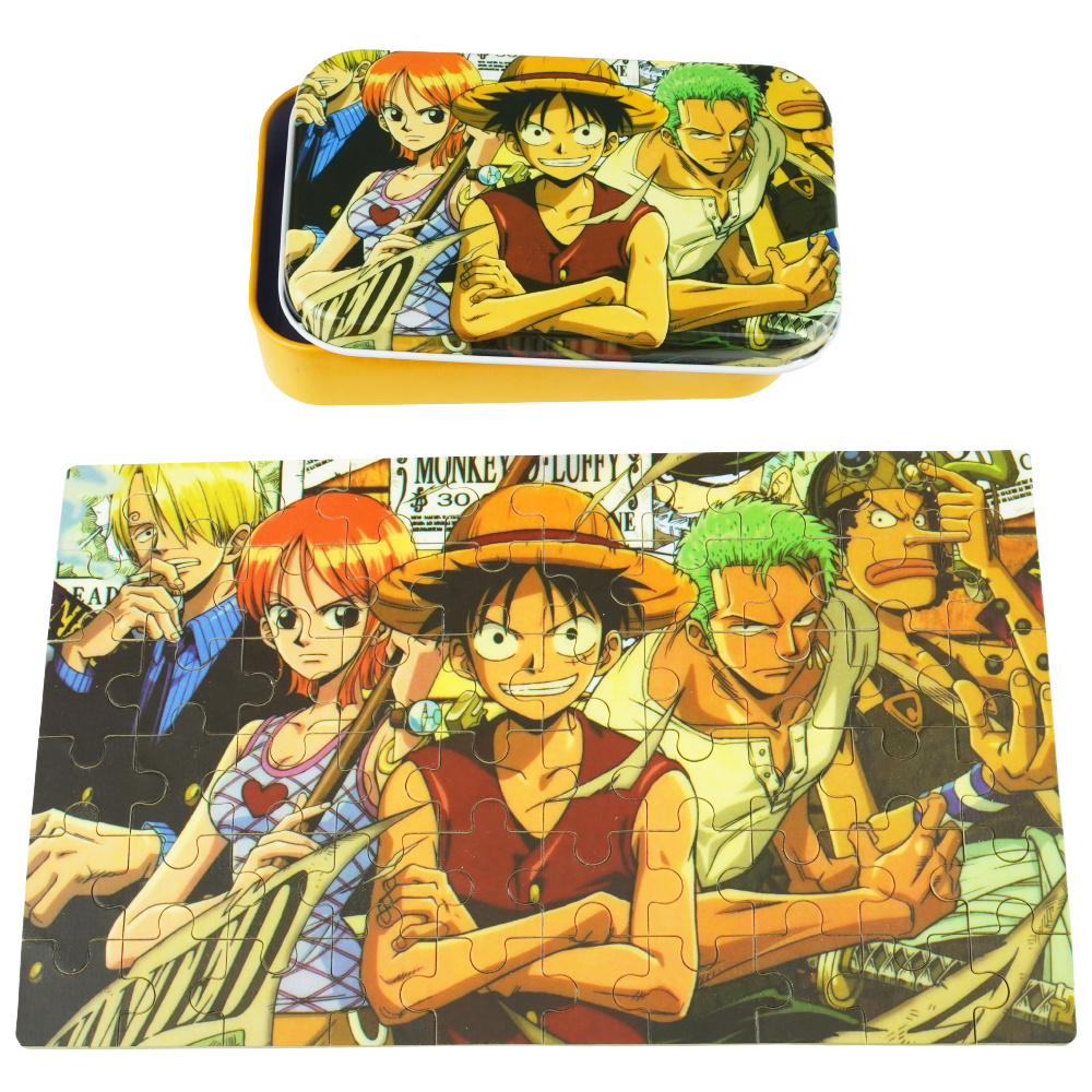 Zadanie polega ułożeniu puzzli tak aby dopasować do siebie elementy które stworzą obrazek w całość, całość została zapakowane kolorowe metalowe pudełeczko.
