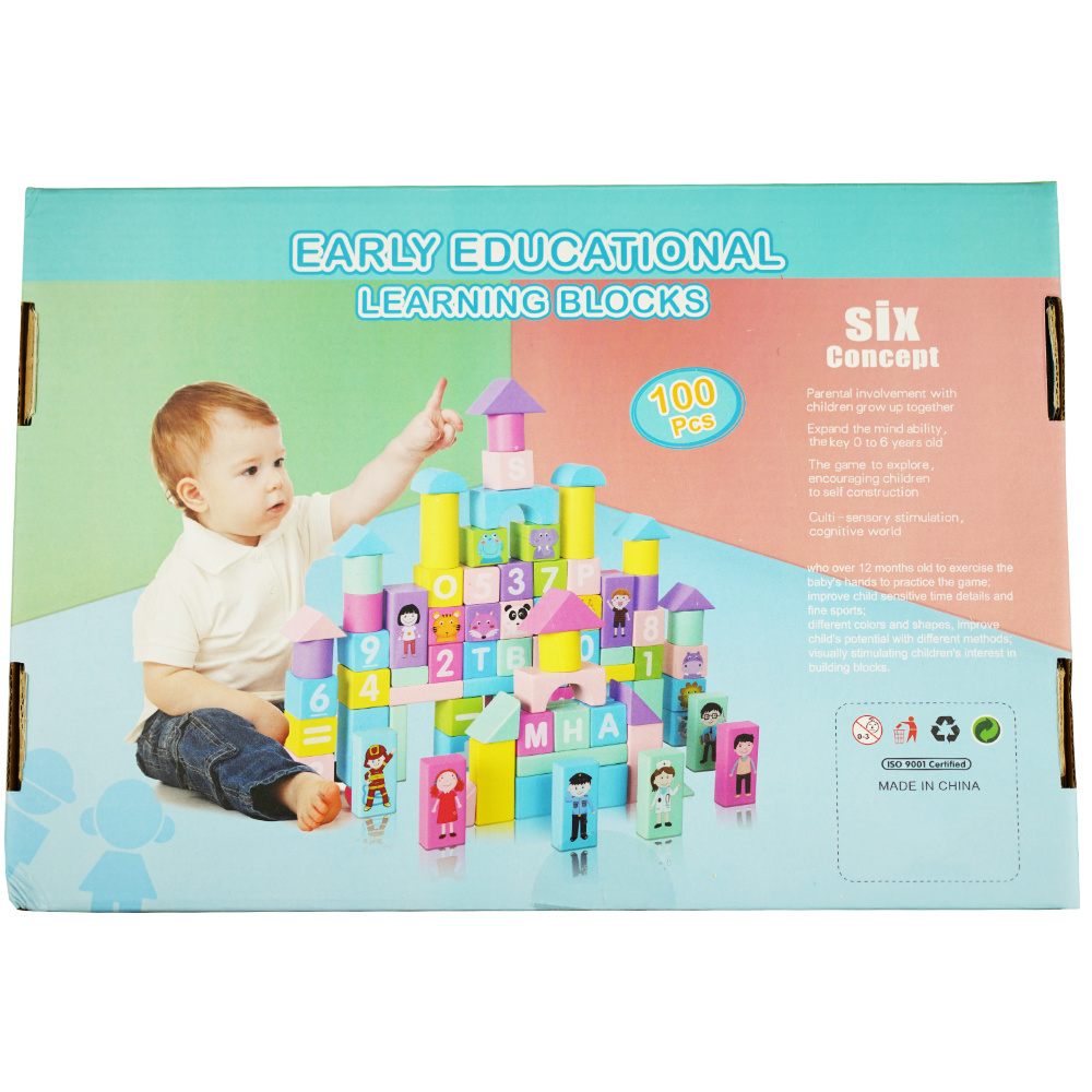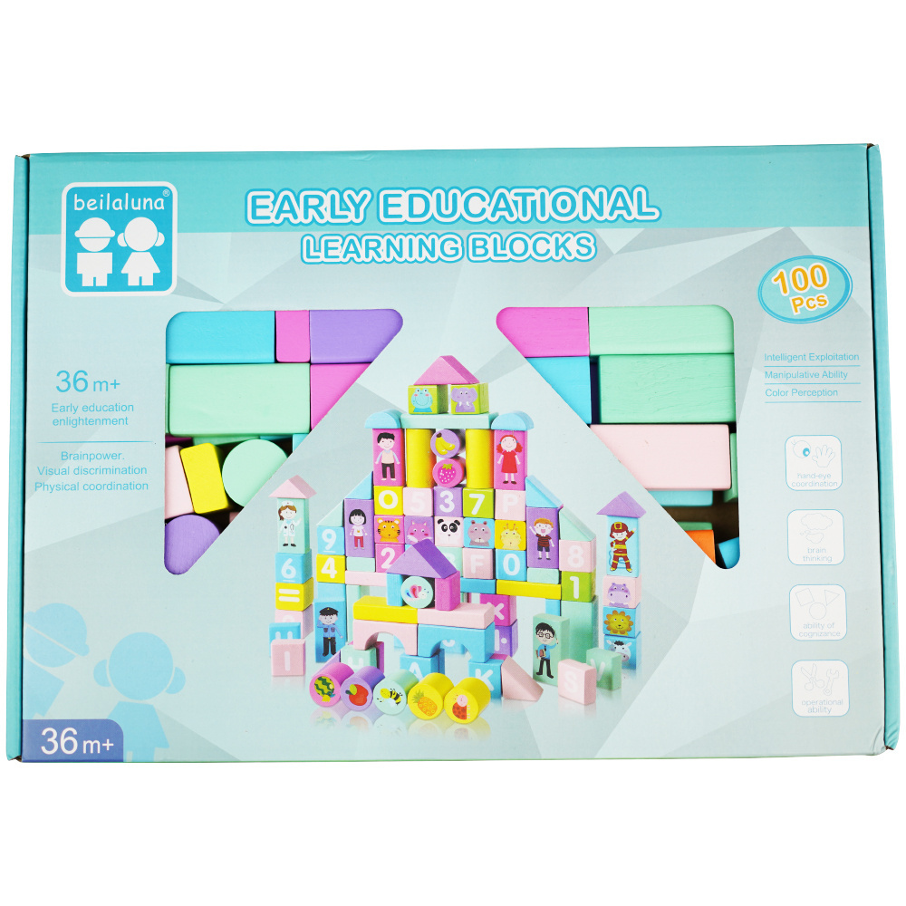 Zestaw 100 klocków wykonanych z wysokiej jakości drewna. Idealnie gładkie, wypolerowane, pokryte bezpieczną farbą. Wykonane z ekologicznego i trwałego materiału jakim jest drewno sprawia, że będą one służyły zabawie przez wiele lat.