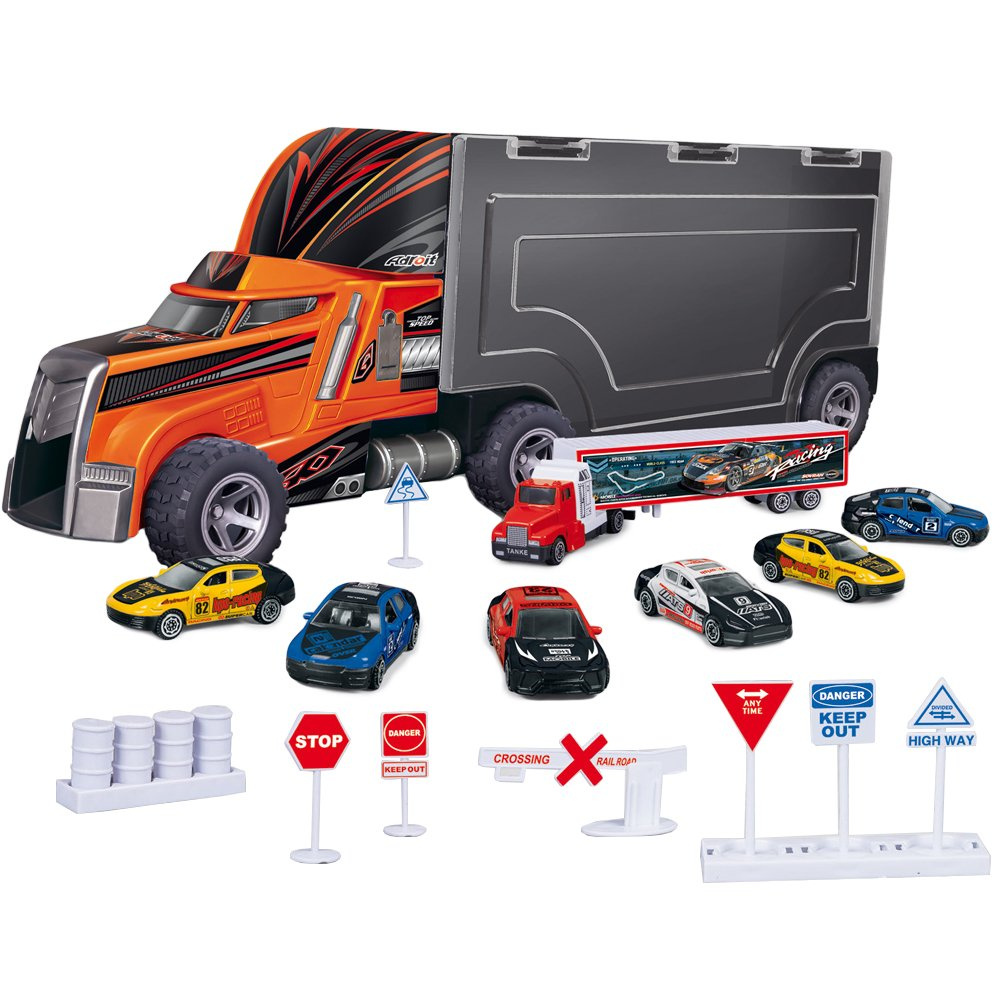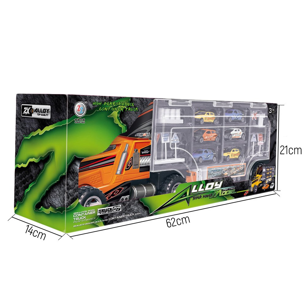 Tir jest bardzo duży, przypomina klasyczny model,wyposażony jest w 6 ruchomych kół, które umożliwiają dziecku świetną zabawę. Pojazd wykonany jest z wytrzymałego, solidnego plastiku, który jest odporny na zniszczenia. Na dachu tira umieszczona jest wysuwana rączka, która ułatwia przenoszenie zestawu nie przeszkadza to jednak w czasie zabawy, ponieważ jest wtedy zupełnie niewidoczna.