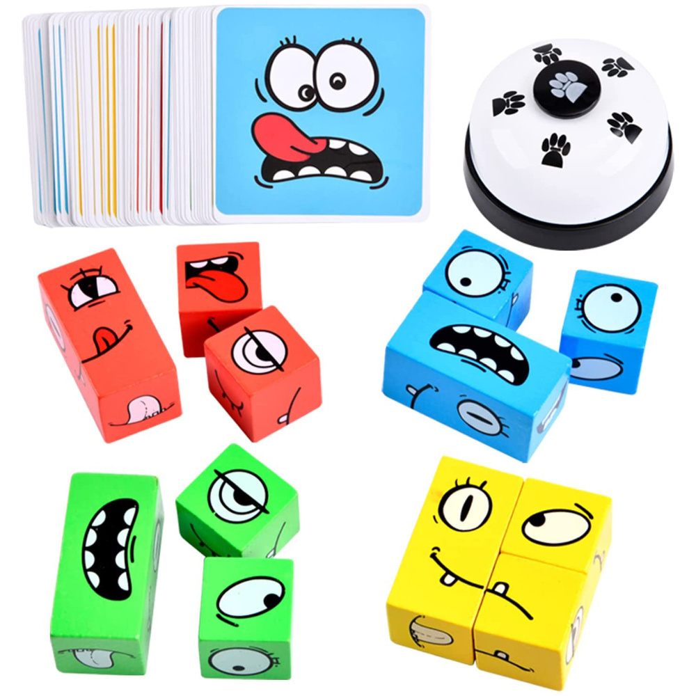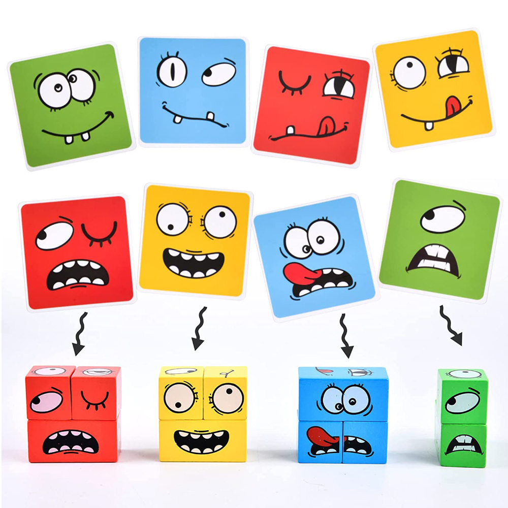 Drewniane klocki zmiana twarzy emocja gra logiczna