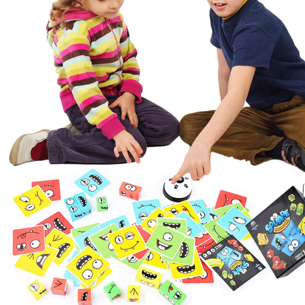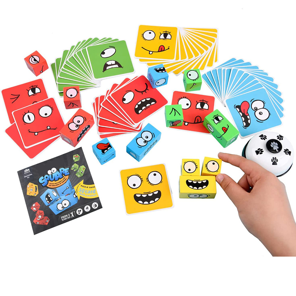 Jedno oko tutaj, uśmiech tam. Szybko! Ułóż klocki zgodnie z wylosowana kartą. Czy twoja twarz będzie zaskoczona, smutna, szczęśliwa a może wszystkiego po trochu?