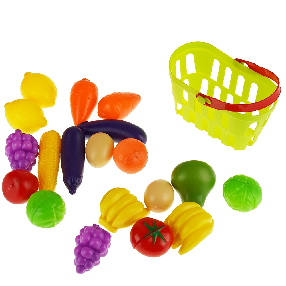 Dodatkowym atutem zabawki są imitacje warzyw, owoców np.kukurydza, jabłko, banan i wiele innych artykułów spożywczych.