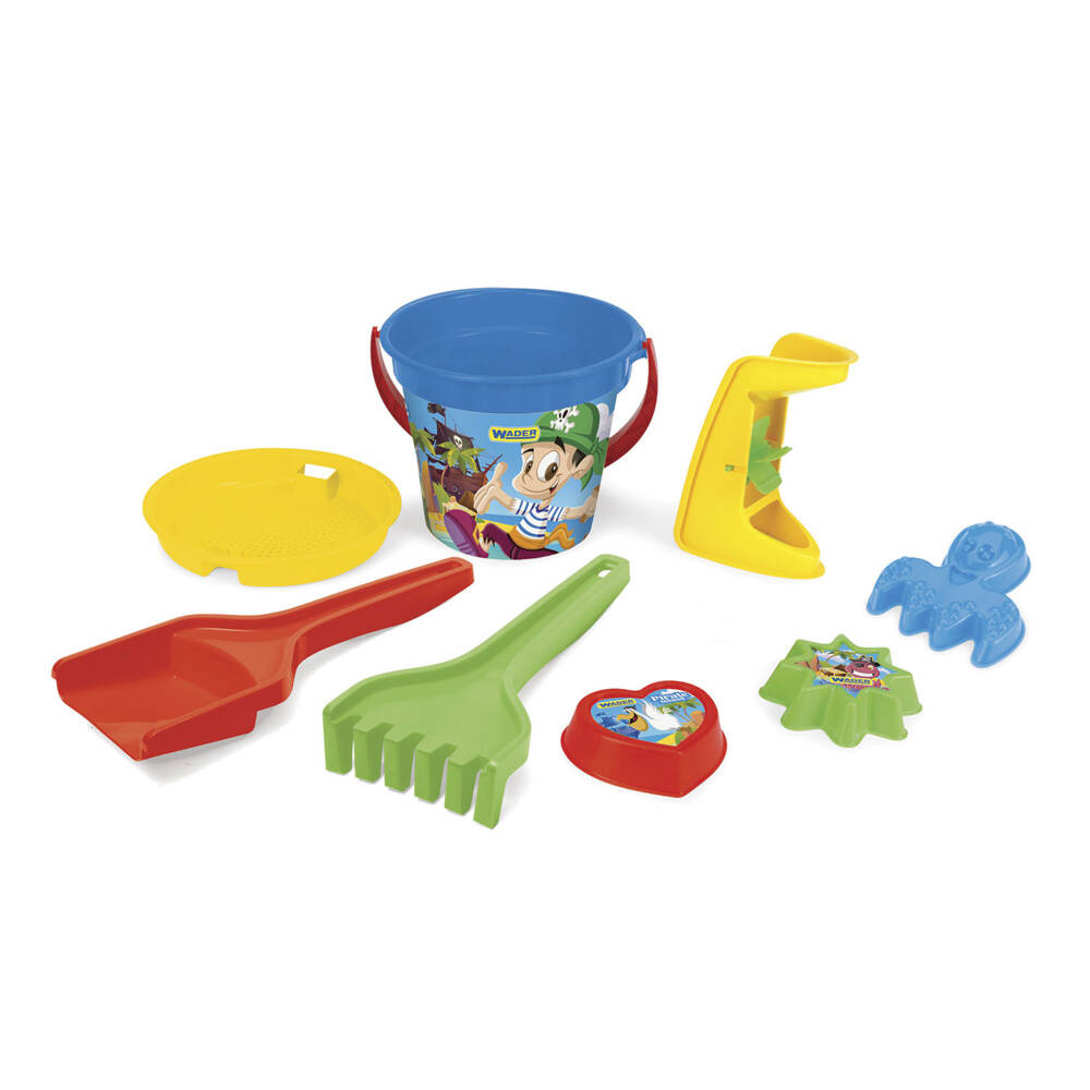 Zestaw występuje w 2 wersjach kolorystycznych. Zawiera łopatkę, grabki, 3 foremki (dwie IML i jedna morska), młynek oraz wiaderko 3.4 l z ciekawą grafiką wykonaną metodą IML. Dzięki temu wytrzyma ona kontakt z wodą i słońcem. Całość w żywej, letniej kolorystyce, wyprodukowana w Polsce z bezpiecznych i wytrzymałych materiałów.