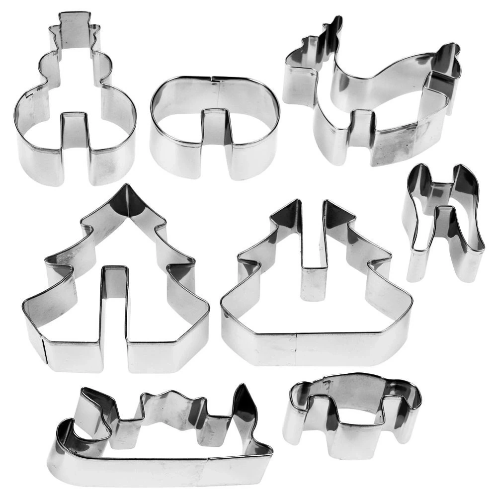 - Zestaw 8 świątecznych wykrawaczy do przygotowywania pierników oraz ciastek w 3D. Wykonane ze stali nierdzewnej. Dzięki nim powstaną choinki, bałwany, renifery oraz sanie.