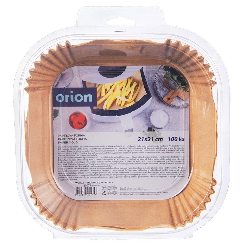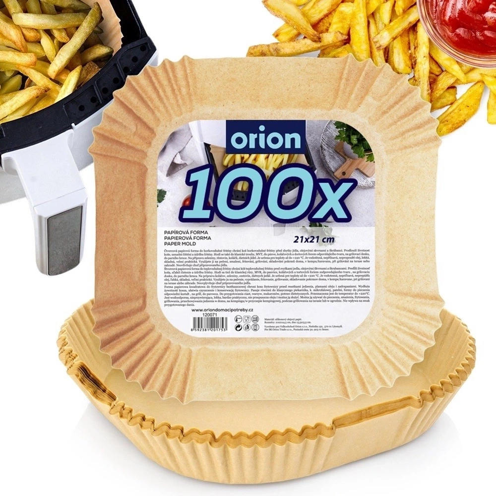 Zestaw 100 sztuk jednorazowych wkładów do frytkownicy Air Fryer. Z ich pomocą w wygodny sposób możemy smażyć potrawy w frytkownicy, ale także w piekarniku lub podgrzewać w mikrofalówce. Wkłady pozwolą utrzymać frytkownicę w czystości. Wkłady nie zmieniają smaku jedzenia, są trwałe i zdrowe. Oryginalny produkt czeskiej marki Orion. Wyprodukowano zgodnie z europejskimi standardami.
