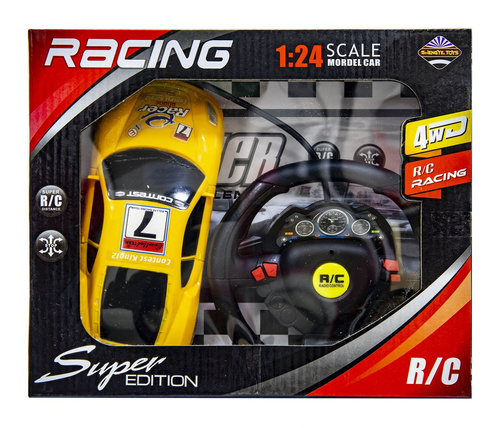 Starannie wykonany, zdalnie sterowany samochód sportowy zapewni niezwykłe emocje zarówno dziecku, jak i dorosłemu. Poczuj się jak prawdziwy kierowca rajdowy i zasiądź za kierownicą sportowego auta! Zabawka jeździ we wszystkich kierunkach, a do jej sterowania służy prosty w sterowaniu pilot w kształcie kierownicy.