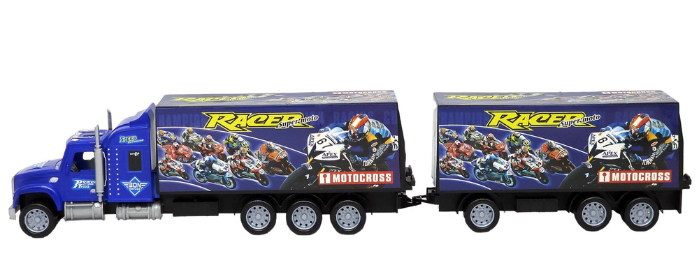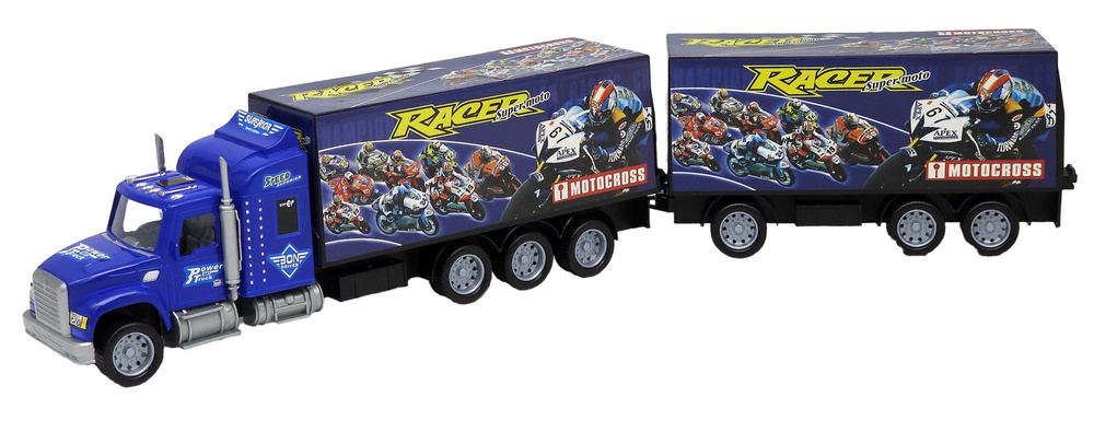 Ciężarówka z przyczepą wiernie odwzorowuje prawdziwy pojazd. Wykonana w skali 1:32 została stworzona na wzór amerykańskich ciężarówek. Posiada napęd typu friction. Na naczepach ciężarówki znajdują się realistyczne grafiki dzięki czemu pojazd prezentuje się bardzo okazale. Z całą pewnością zabawka zachwyci wszystkich małych miłośników motoryzacji, sprawiając im sporo radości.