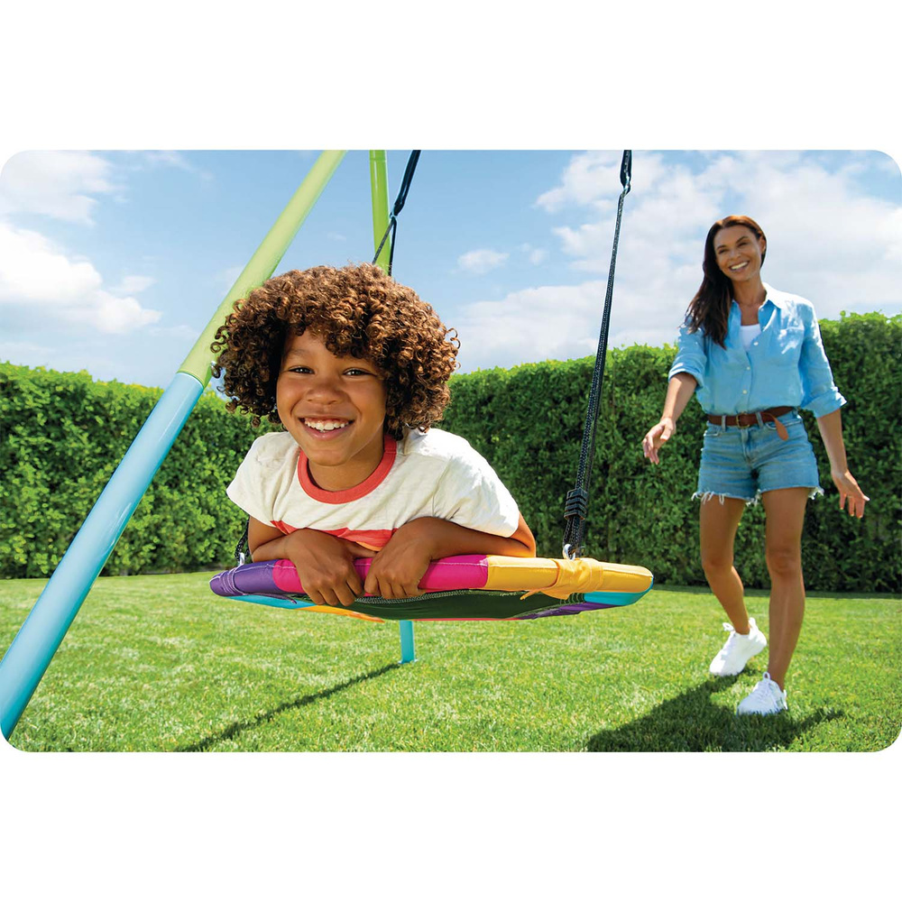 Solidna kolorowa huśtawka ogrodowa 2 funkcje pas i bocianie gniazdo Intex 44125