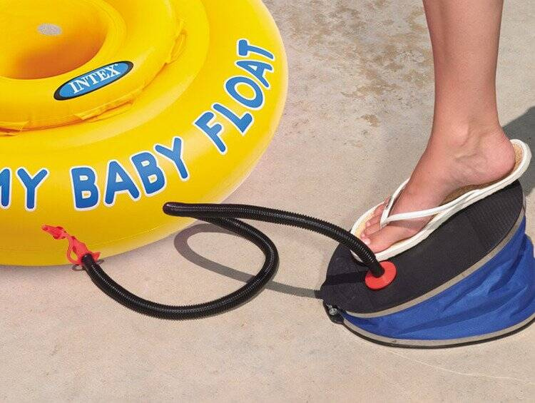 - Pompka nożna (30 cm) firmy Intex, dzięki której napompujesz każdy dmuchany produkt. Pompka posiada funkcję wypompowywania powietrza.
