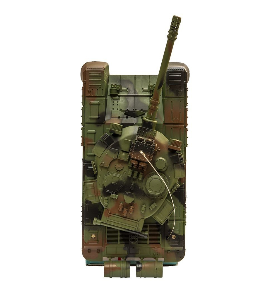 Zdalnie sterowany czołg to idealny pomysł na prezent i super zabawa dla każdego dziecka, które marzy, aby w przyszłości zostać zawodowym żołnierzem. Czołg posiada obrotową wieżyczkę z lufą oraz diodowe przednie oraz tylne reflektory (różne kolory świateł: czerwony i zielony). Ta groźnie wyglądająca maszyna bojowa jest zaskakująco szybka i zwrotna. Zabawa tym czołgiem to prawdziwa frajda. Sterowanie za pomocą uproszczonego pilota sprawi, że dziecko bezproblemowo będzie kierować czołgiem w atmosferze wesołej zabawy. Dodatkową atrakcją są realistyczne dźwięki strzelania.