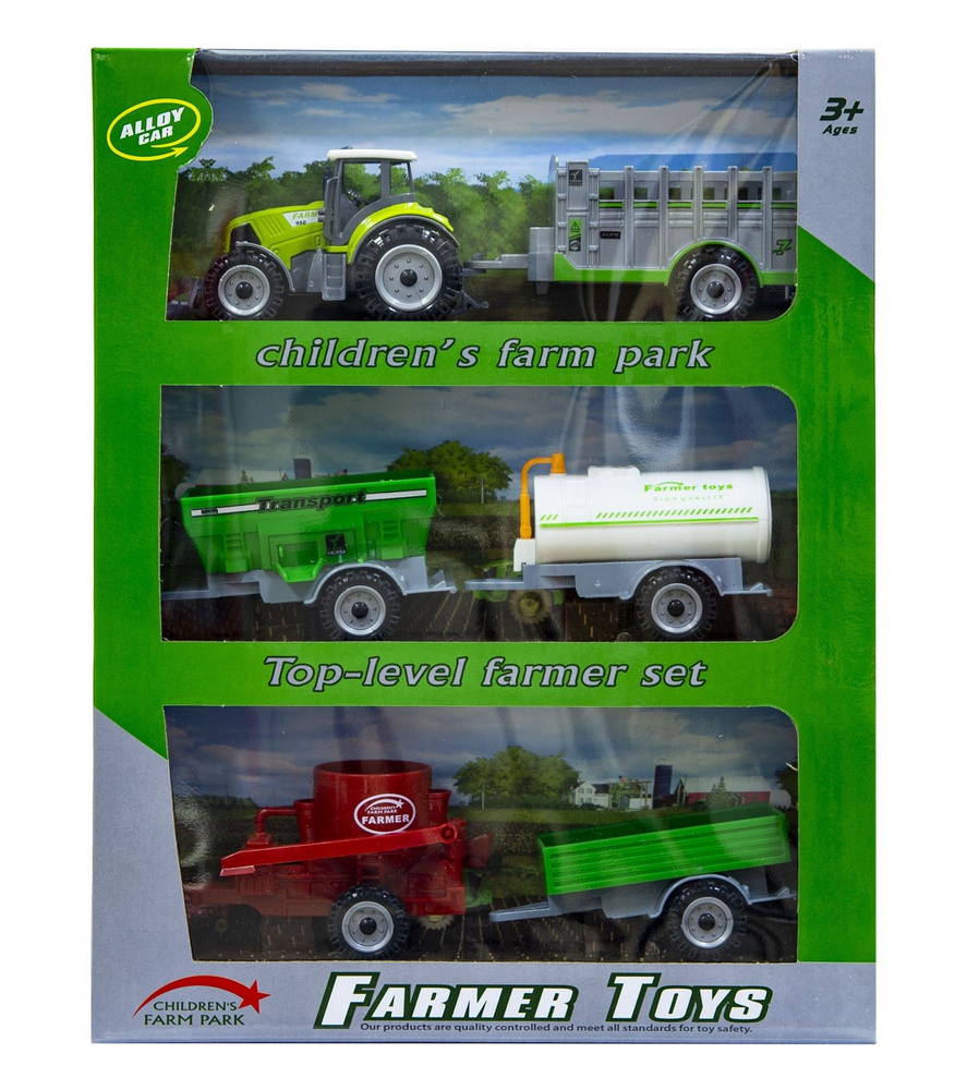Realistyczny, zielony traktor z wymiennymi przyczepami to idealna zabawka dla każdego dziecka, które marzy o swoim własnym sprzęcie rolniczym. Żywa kolorystyka zestawu przyciąga wzrok.