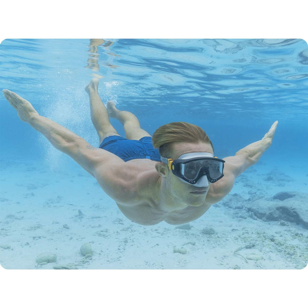 - Czarna maska do pływania Bestway zapewnia doskonałą widoczność i komfort podczas nurkowania. Wykonana z trwałych materiałów, idealnie dopasowuje się do twarzy, gwarantując szczelność i wygodę użytkowania.