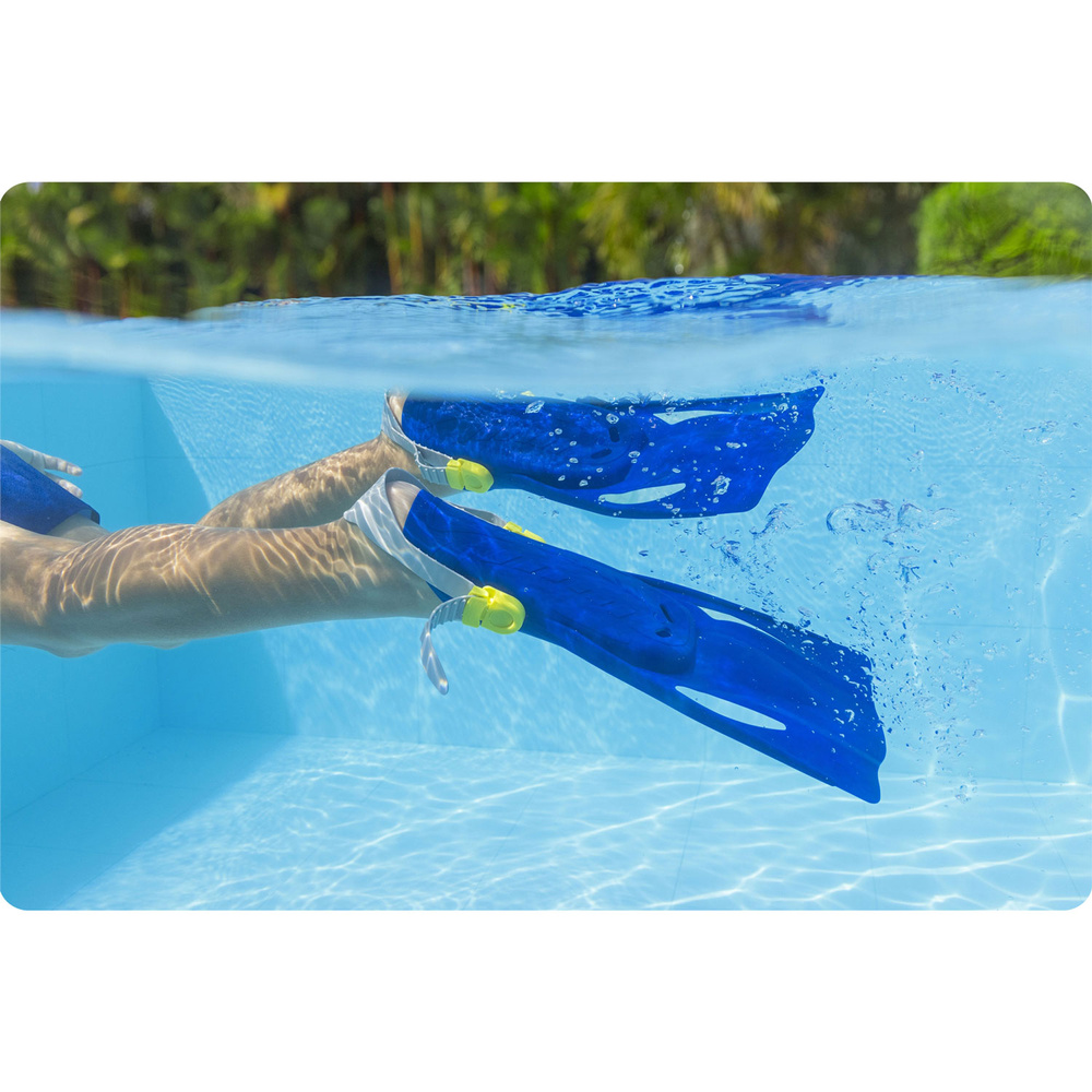 - Regulacja i dopasowanie: Regulowany pasek maski oraz zaczep rurki umożliwiają łatwe i szybkie dopasowanie do indywidualnych potrzeb użytkownika. Płetwy w rozmiarze 37–41 zapewniają komfort noszenia i efektywne poruszanie się w wodzie.