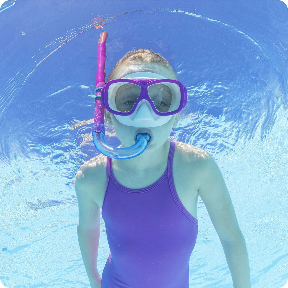 - Różowy zestaw do nurkowania Bestway, składający się z maski i rurki, zapewnia komfort oraz bezpieczeństwo podczas podwodnych przygód. Wykonany z wysokiej jakości materiałów, doskonale dopasowuje się do twarzy dziecka, gwarantując szczelność i wygodę