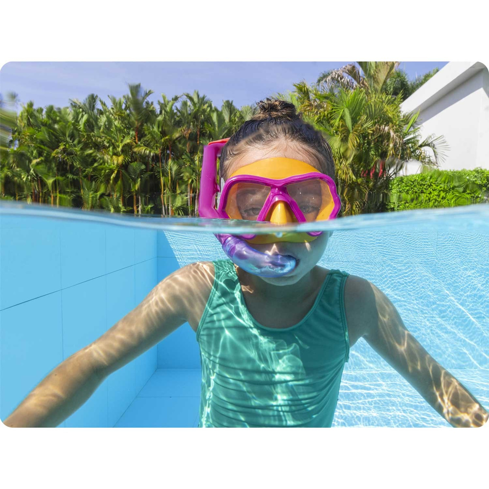- Różowy zestaw do nurkowania Bestway, składający się z maski i rurki, zapewnia komfort oraz bezpieczeństwo podczas podwodnych przygód. Wykonany z wysokiej jakości materiałów, doskonale dopasowuje się do twarzy, gwarantując szczelność i wygodę użytkowania.