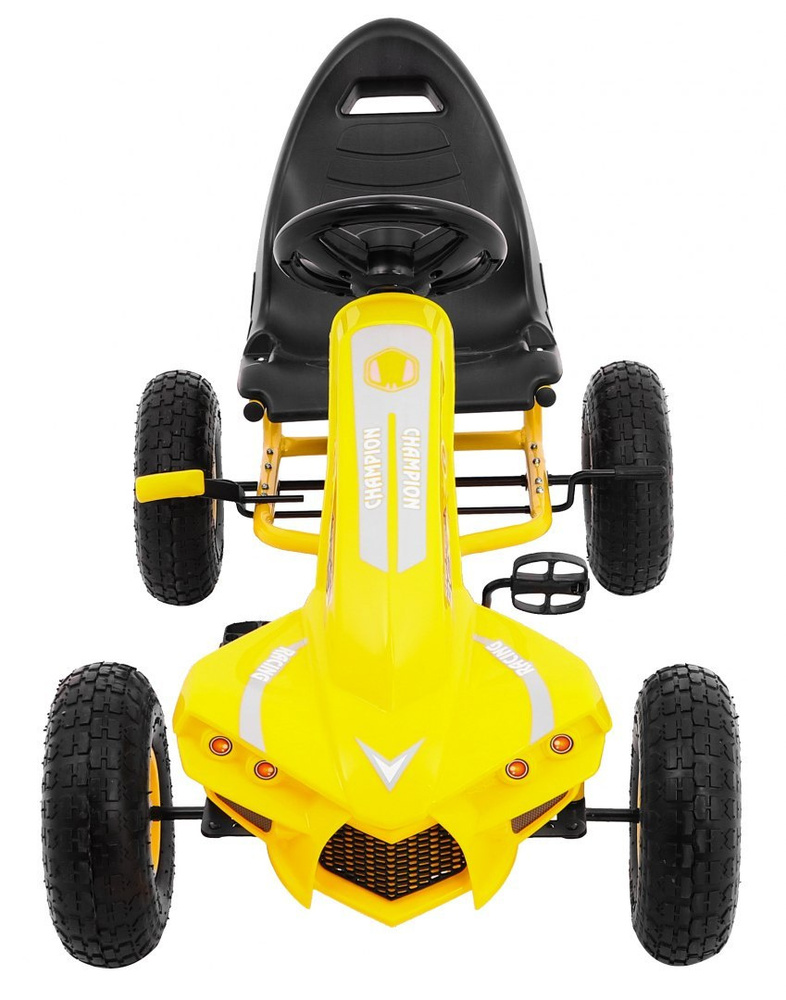 Gokart Champion na pedały dla dzieci 3+ Żółty + Pompowane opony + Regulowane siedzisko + Ręczny hamulec