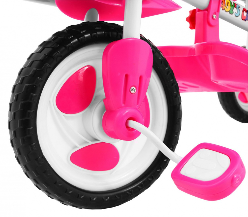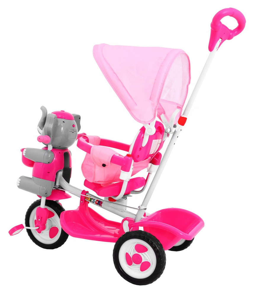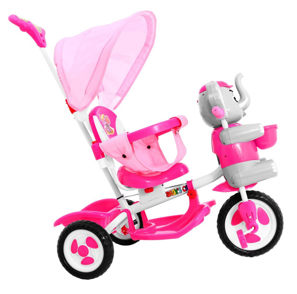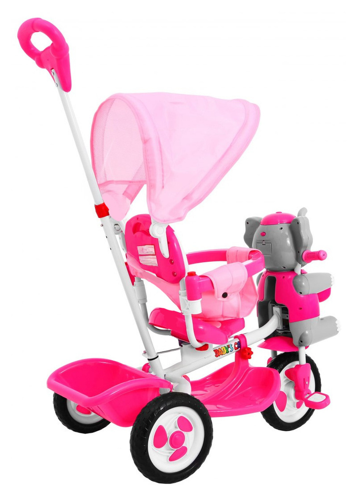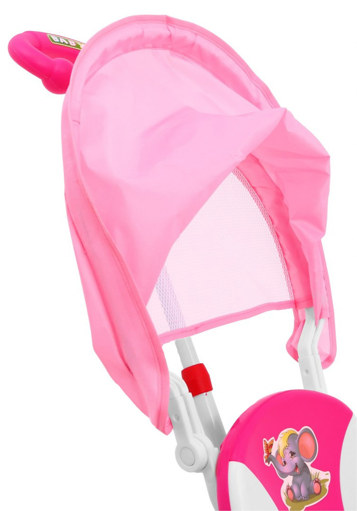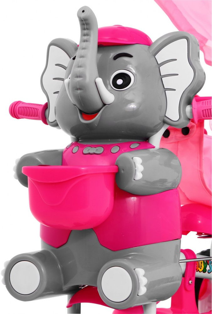 3-kołowy Rowerek dla dzieci Słonik Różowy + Dźwięki + Daszek + Barierka + Podnóżek + Rączka + Schowek