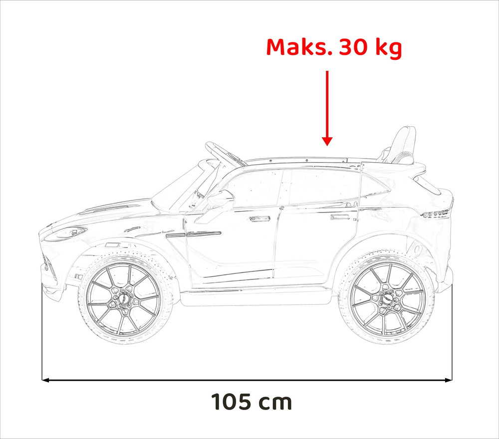 Aston Martin DBX na akumulator dla dzieci Czerwony + Pilot + EVA + Pasy + Wolny Start + Audio LED