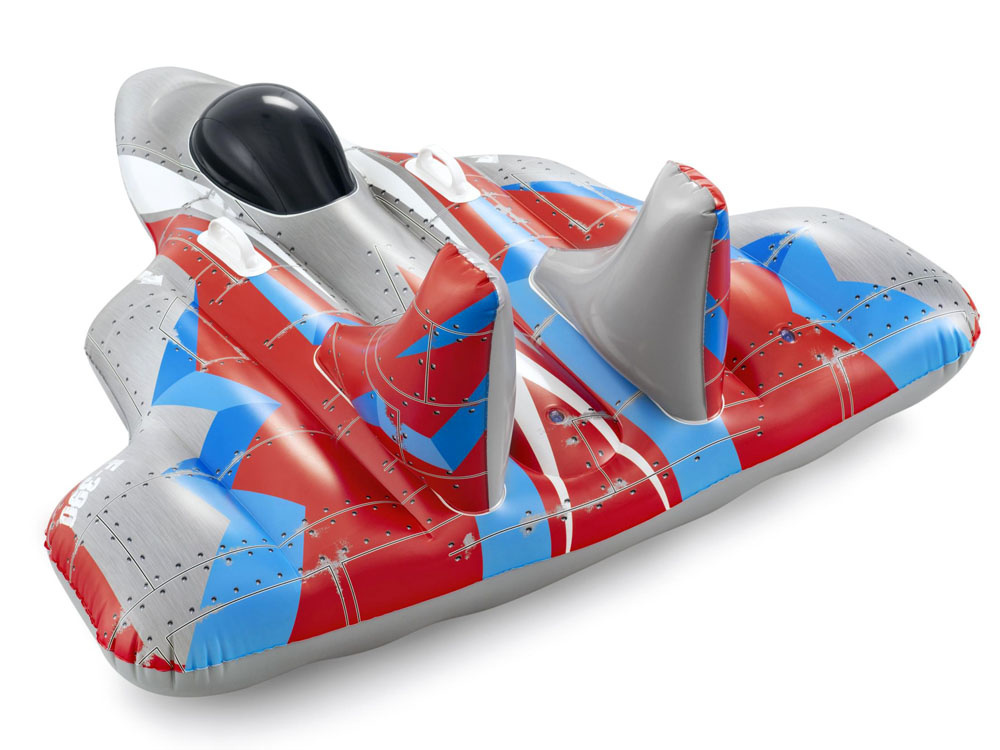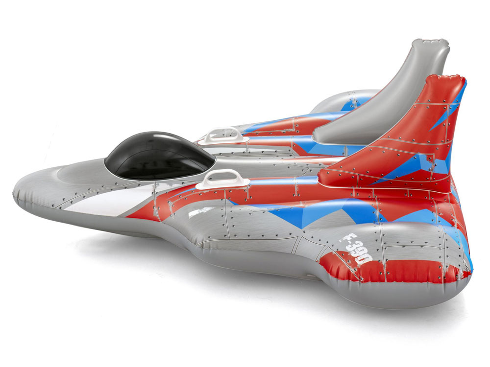Duży dmuchany myśliwiec firmy Bestway to propozycja dla każdego miłośnika samolotów. Jak przystało na myśliwiec świetnie sprawdzi się podczas pokonywania morskich fal, jest stabilny, posiada mocne uchwyty zapewniające komfort pływania po różnych akwenach wodnych. Niezwykle realistyczna grafika oraz imponujący wymiar 136 x 135 cm sprawi radość każdemu młodemu pilotowi podczas wodnych zabaw.