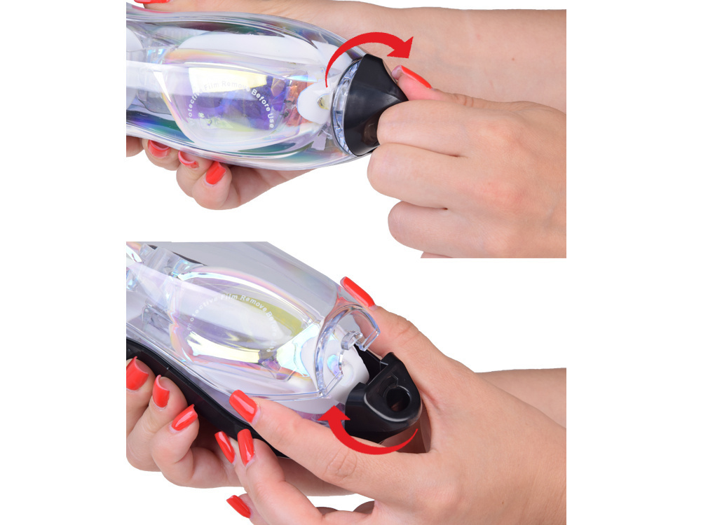 Okulary zapakowane w mocne, plastikowe etui, delikatnie otwierające się za pomocą pokrętła po boku. Idealne do przechowywania, podczas podróży, w plecaku czy też innym miejscu tak aby soczewki okularów były odporne na wszelkie zarysowania.