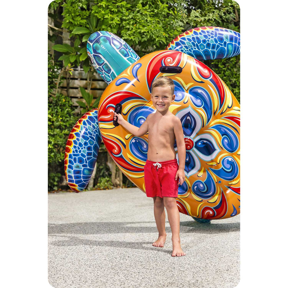 Ciesz się niezapomnianymi chwilami spędzonymi nad wodą z wyjątkowym dmuchanym materacem w kształcie żółwia od Bestway! To idealny wybór na letnie dni, oferujący zabawę i relaks zarówno dzieciom, jak i dorosłym. Dzięki atrakcyjnemu wyglądowi w kształcie żółwia oraz kolorowemu nadrukowi Majolika, materac staje się prawdziwą atrakcją na plaży, w jeziorze lub basenie. Dzięki uchwytom na ręce i lekkiej konstrukcji, jest niezwykle łatwy w użytkowaniu i zapewnia komfort nawet podczas długich godzin wodnych zabaw.