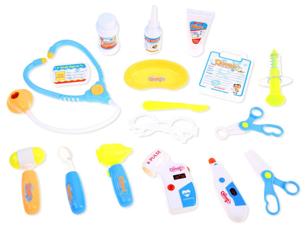 Zestaw lekarski dla dzieci w całości wykonany jest z plastiku, przedstawione instrumenty medyczne są imitacjami prawdziwych przyrządów lekarskich, którym nadano przyjazne kształty i żywe kolory. Panel do EEG pozwala na stałe monitorowanie stanu pacjenta, sygnalizując wszystko odpowiednimi światłami i dźwiękami.