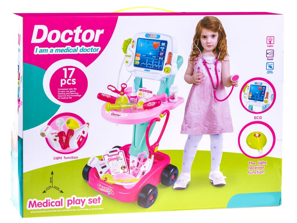 - wózek lekarza dla dzieci, mały lekarz, akcesoria medyczne, pielęgniarka, apteczka