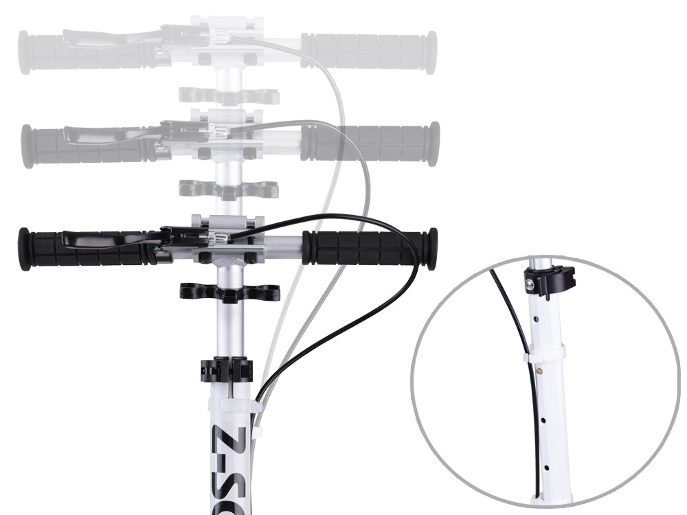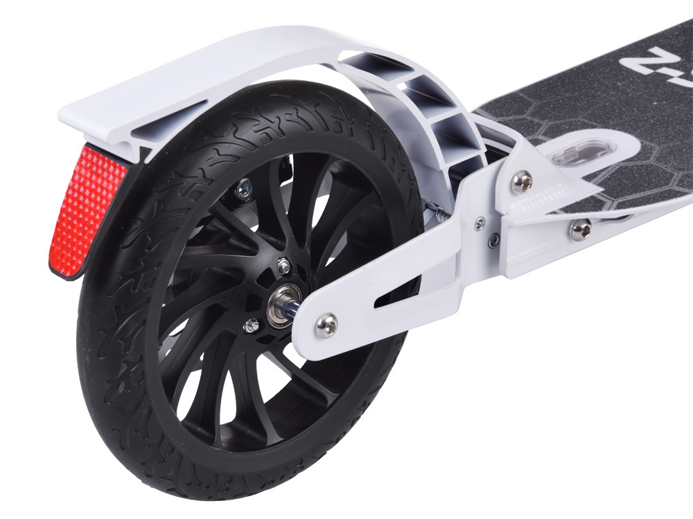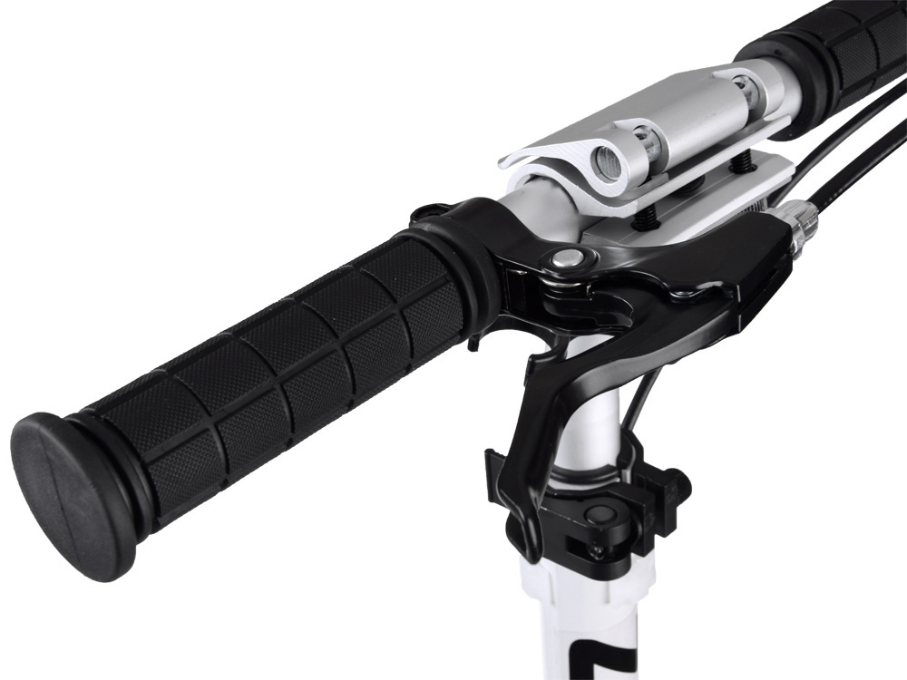- Podwójny System Hamulcowy: Hulajnoga jest wyposażona w ręczny hamulec tarczowy oraz dociskowy hamulec na tylnym kole. Dodatkowo, tylny hamulec posiada odblask, zwiększając widoczność użytkownika.