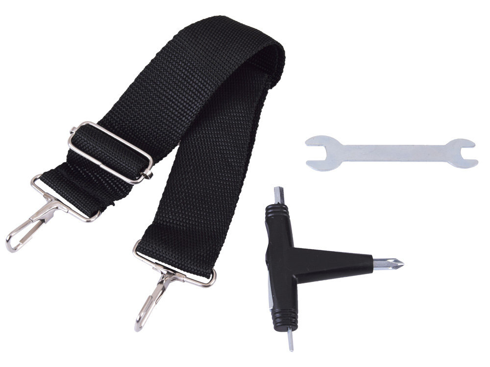 - Dodatkowe Akcesoria: W zestawie znajduje się pasek do przenoszenia. Hulajnoga posiada również podnóżek do bezpiecznego parkowania.