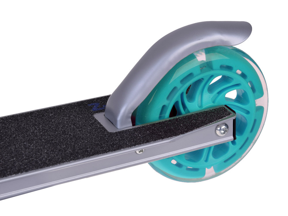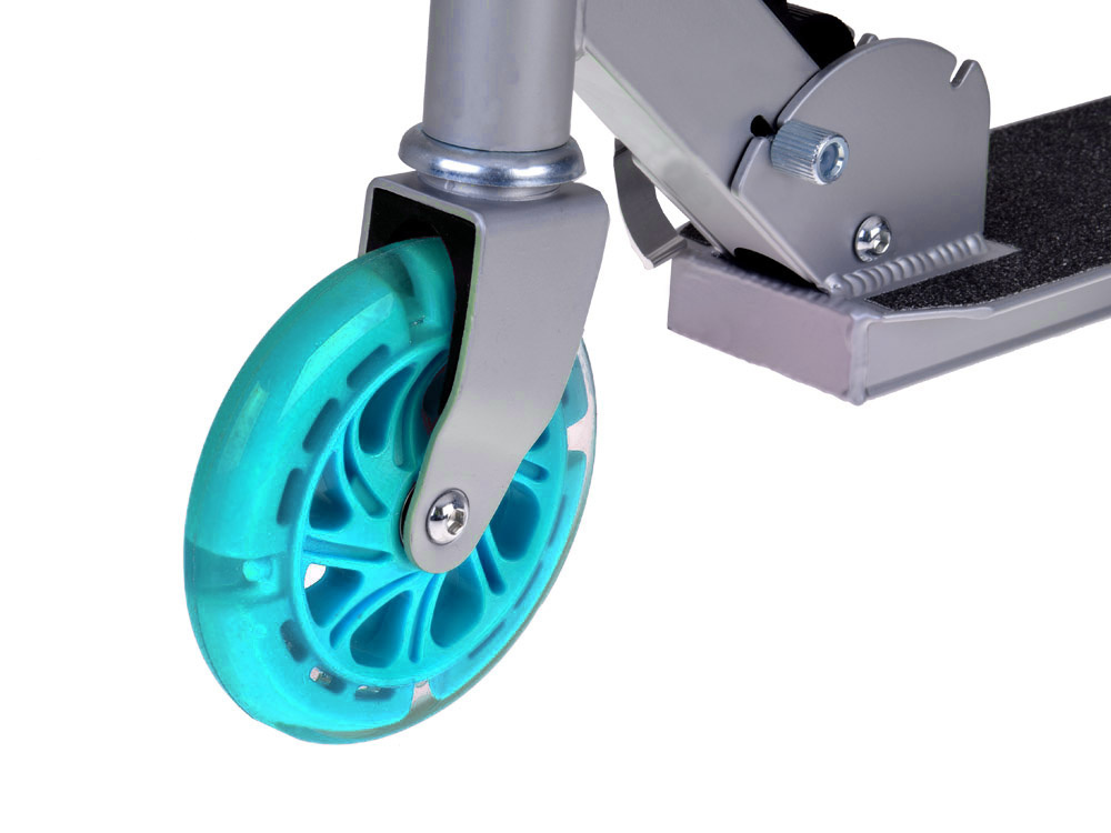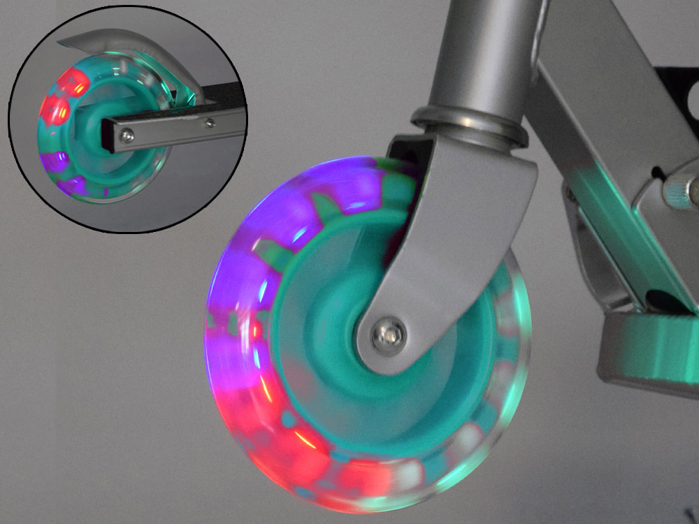• Świecące Kółka: Koła wyposażone w diody LED, które świecą podczas jazdy, zwiększając widoczność i atrakcyjność hulajnogi. Diody nie wymagają baterii, ponieważ działają dzięki energii magnetycznej generowanej podczas kręcenia się kół.