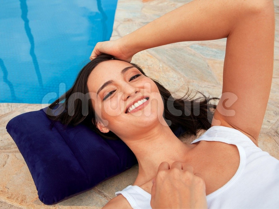 Praktyczna i wygodna nadmuchiwana poduszka firmy Intex to idealne rozwiązanie dla osób podróżujących zarówno autem jak i samolotem.