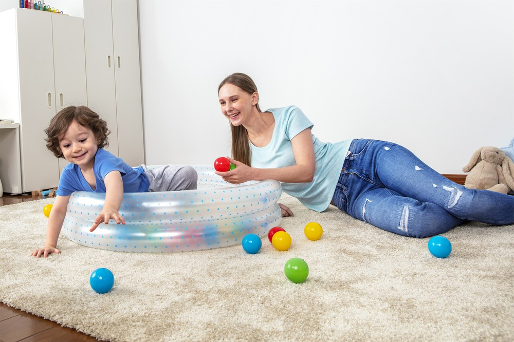 - basen, - 50 piłeczek, - łatka naprawcza, - kolorowe pudełko. |