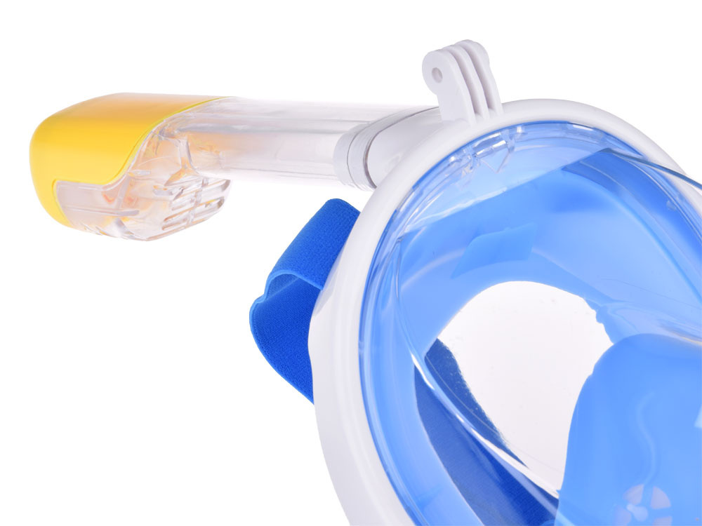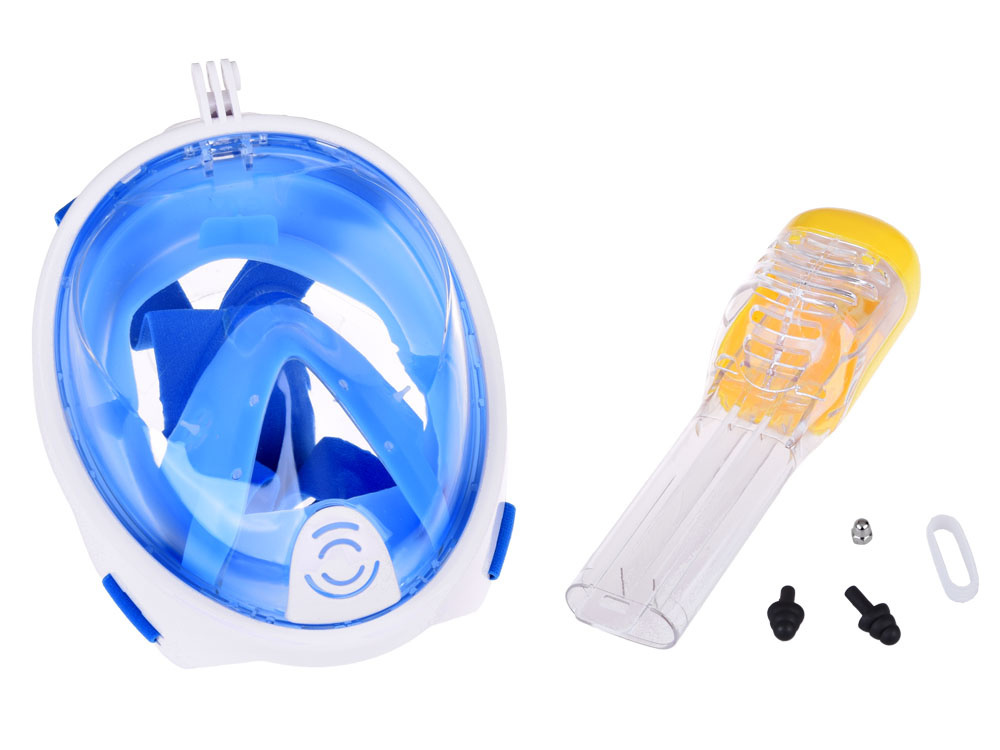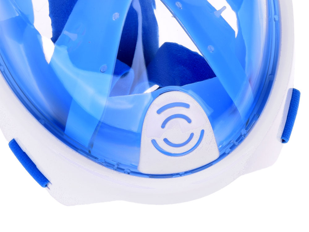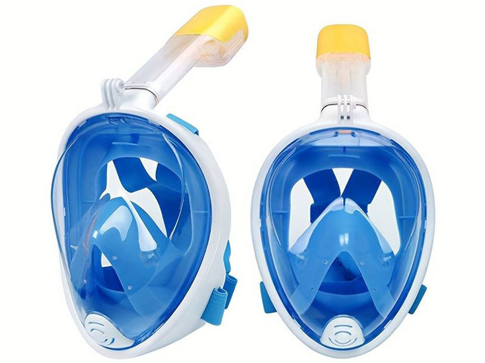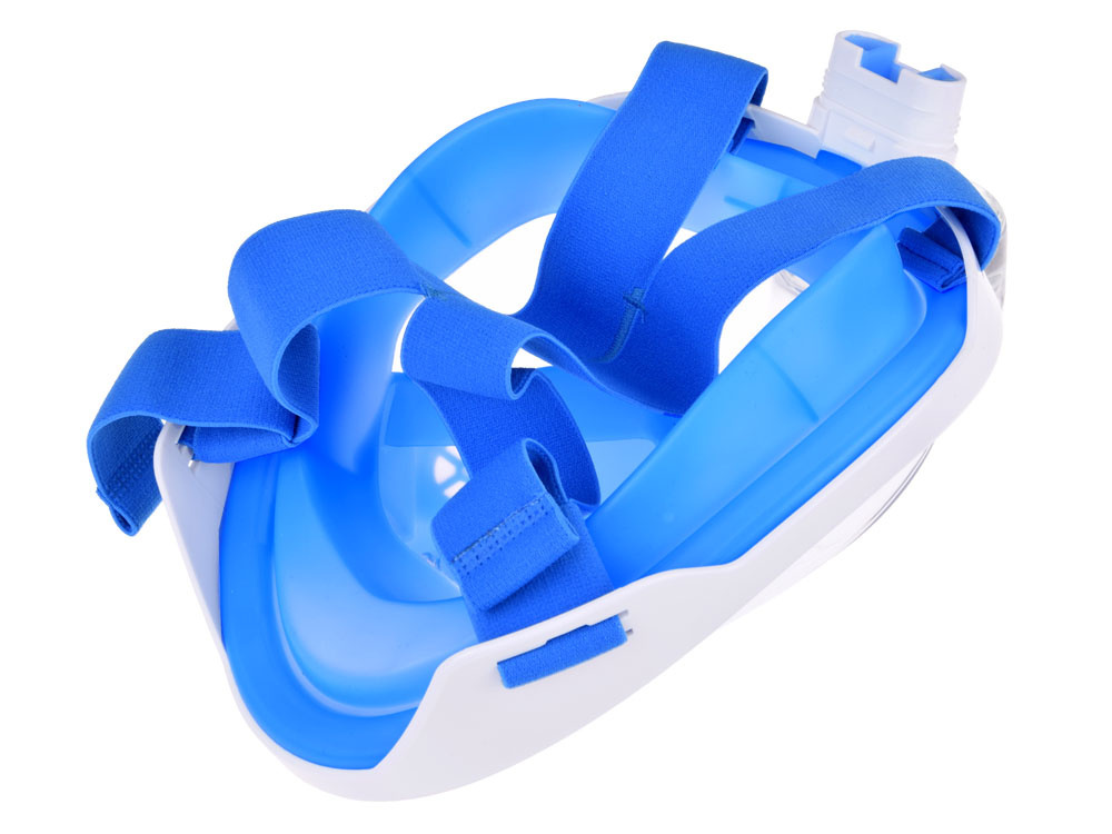- Niebieska, pełnotwarzowa, szczelna maska do wody z rurką silikon + PC snorekling, rozmiar S//M