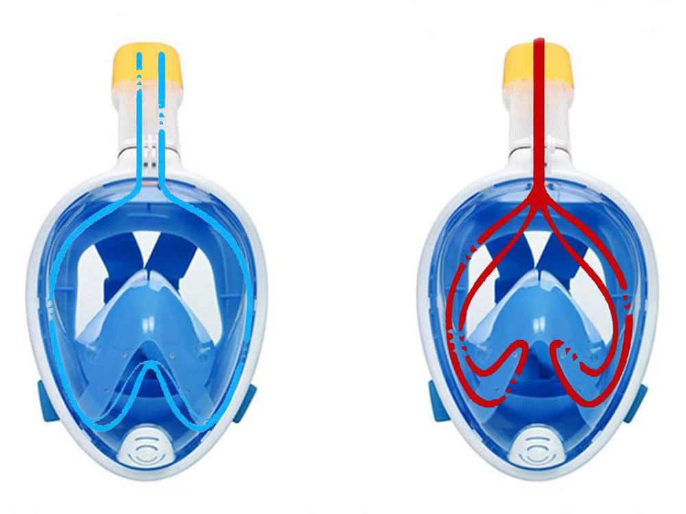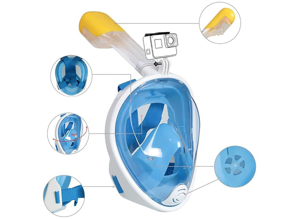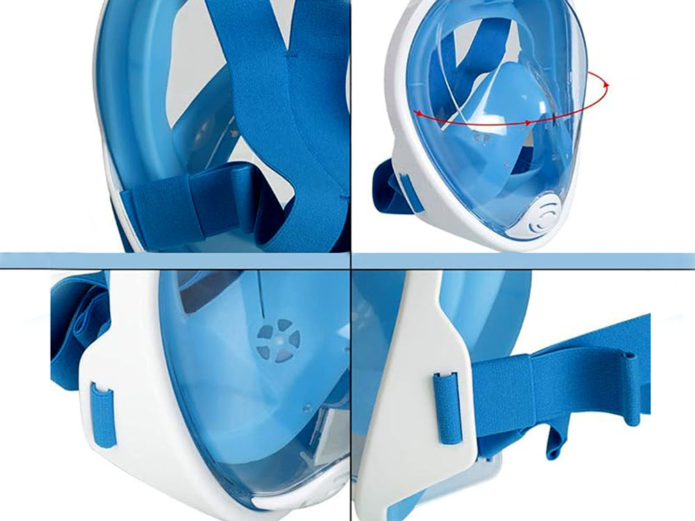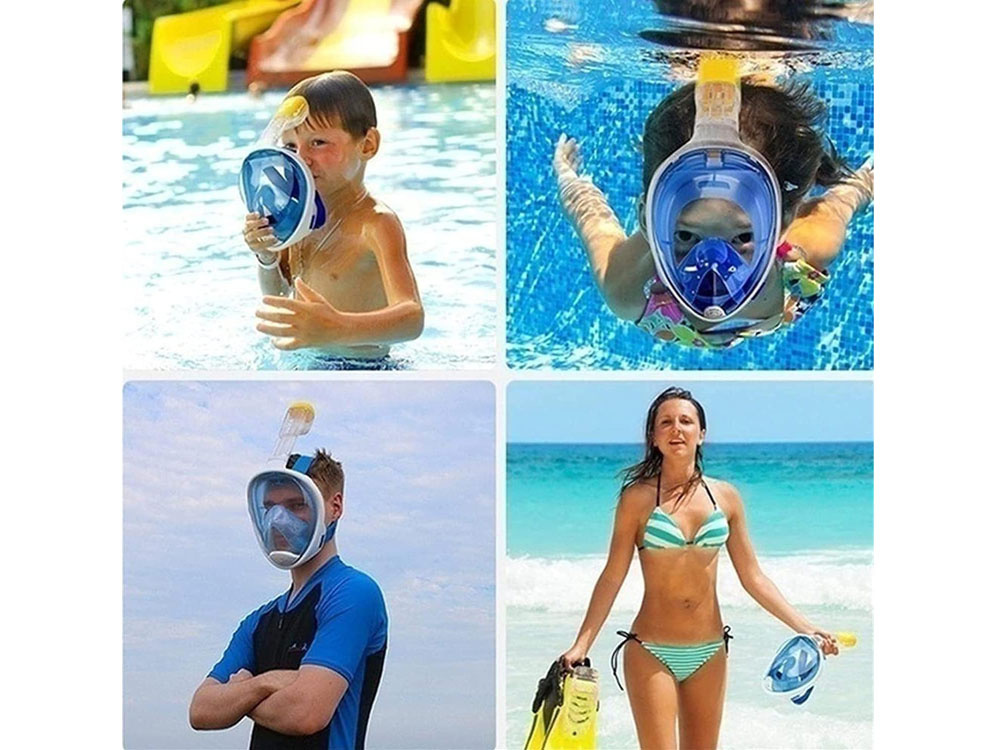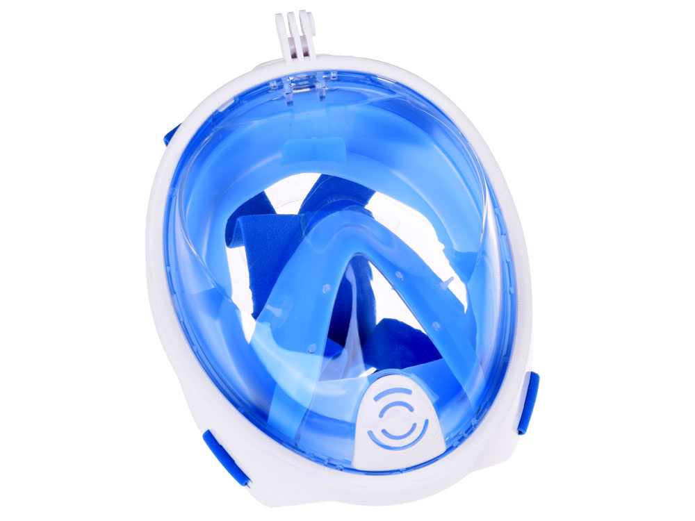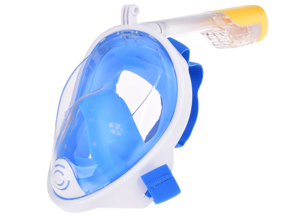 - Niebieska, pełnotwarzowa, szczelna maska do wody z rurką silikon + PC snorekling, rozmiar S//M
