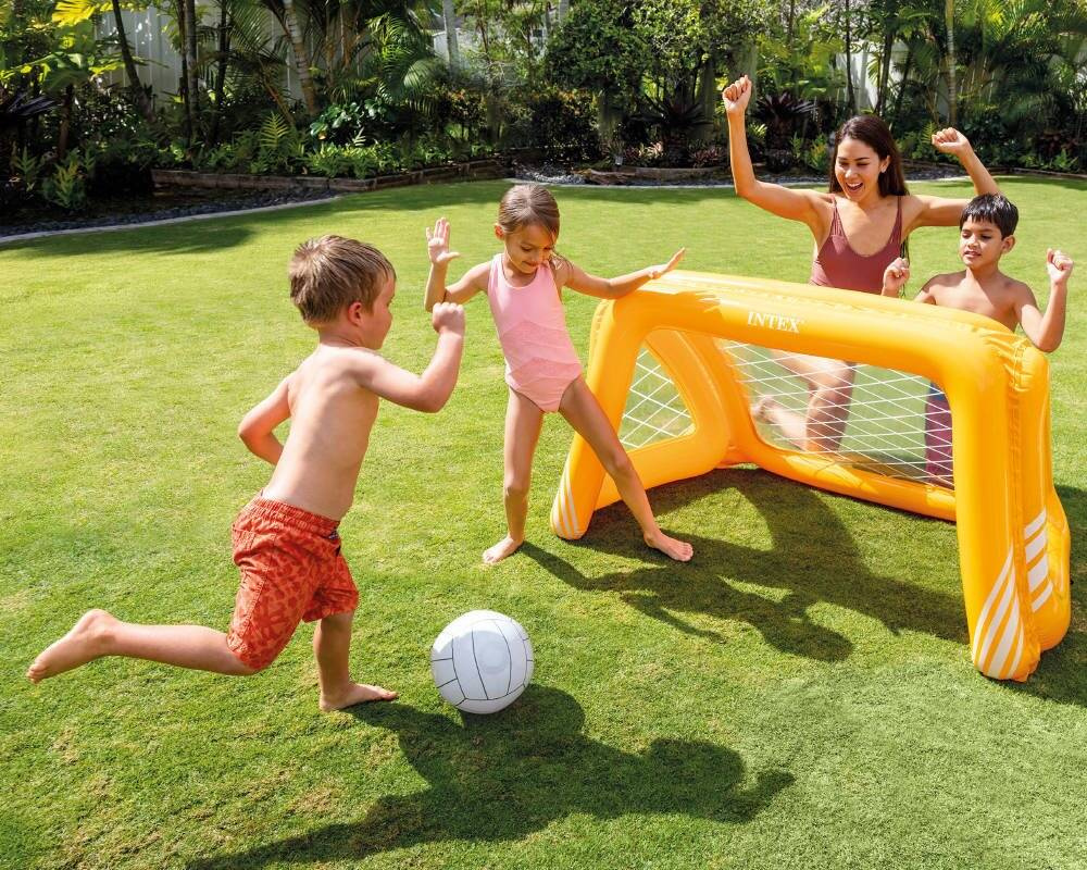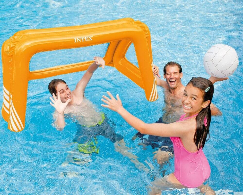 Dmuchany zestaw do piłki wodnej, został przystosowany do ewentualnego obciążenia go ciężarkami. Zestaw jest przeznaczony do gry w wodzie/ basenie, ale można również korzystać z niego na trawie.