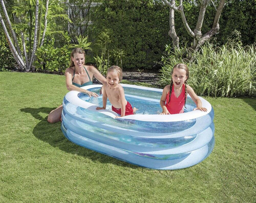 Basen posiada wysokie ścianki, które składają się z trzech przeźroczystych dmuchanych pierścieni.