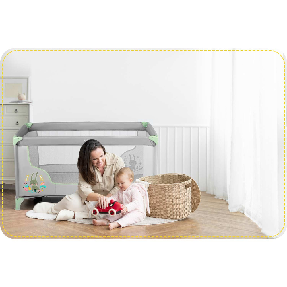 Oferujemy łóżeczko turystyczne w eleganckim, szaro-miętowym kolorze, które łączy w sobie komfort oraz praktyczność. To idealne rozwiązanie dla rodziców ceniących sobie **mobilność** i **bezpieczeństwo** podczas podróży z dzieckiem. Dzięki jego uniwersalnemu zastosowaniu sprawdzi się zarówno w trakcie wyjazdów, jak i w codziennym użytkowaniu w domowym zaciszu.
