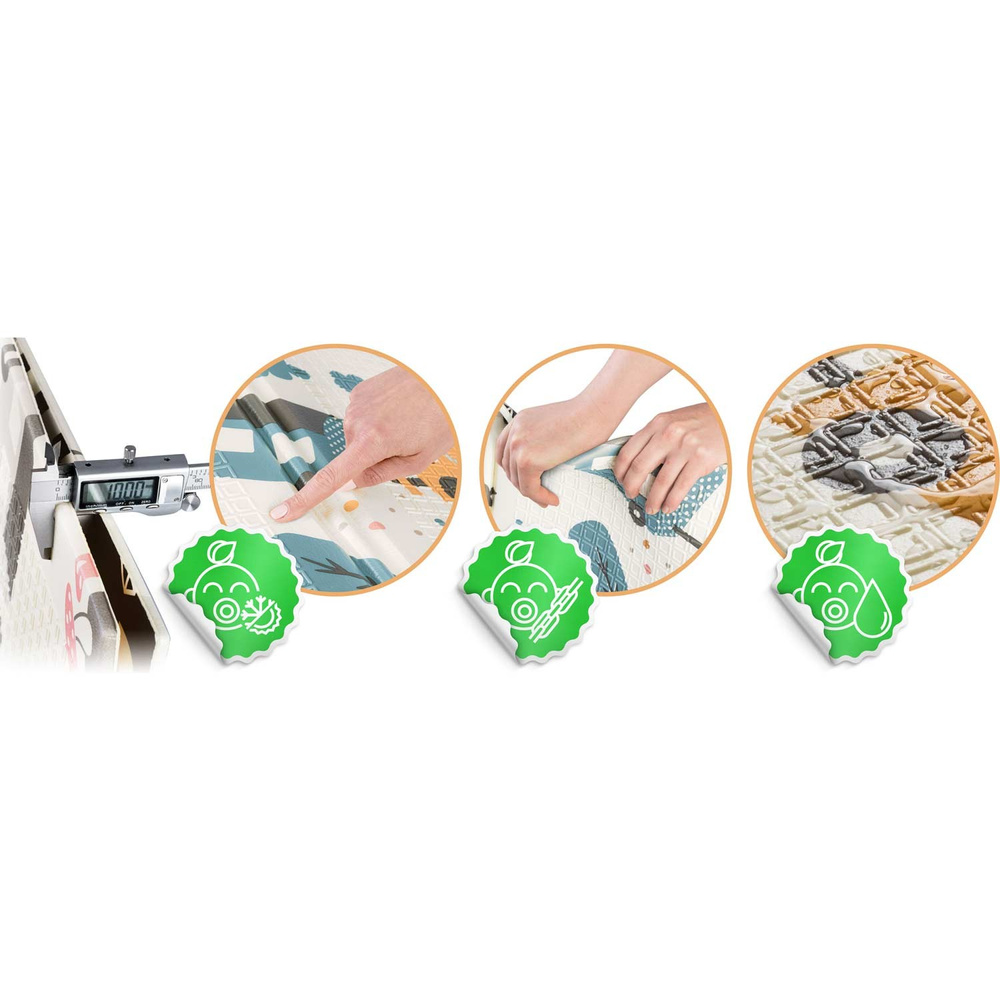 - Bezpieczeństwo: Wykonana z bezzapachowej pianki XPE, wolna od szkodliwych substancji takich jak BPA, PVC czy ftalany. Wyposażona w antypoślizgowe wypustki, co zwiększa bezpieczeństwo podczas zabawy.