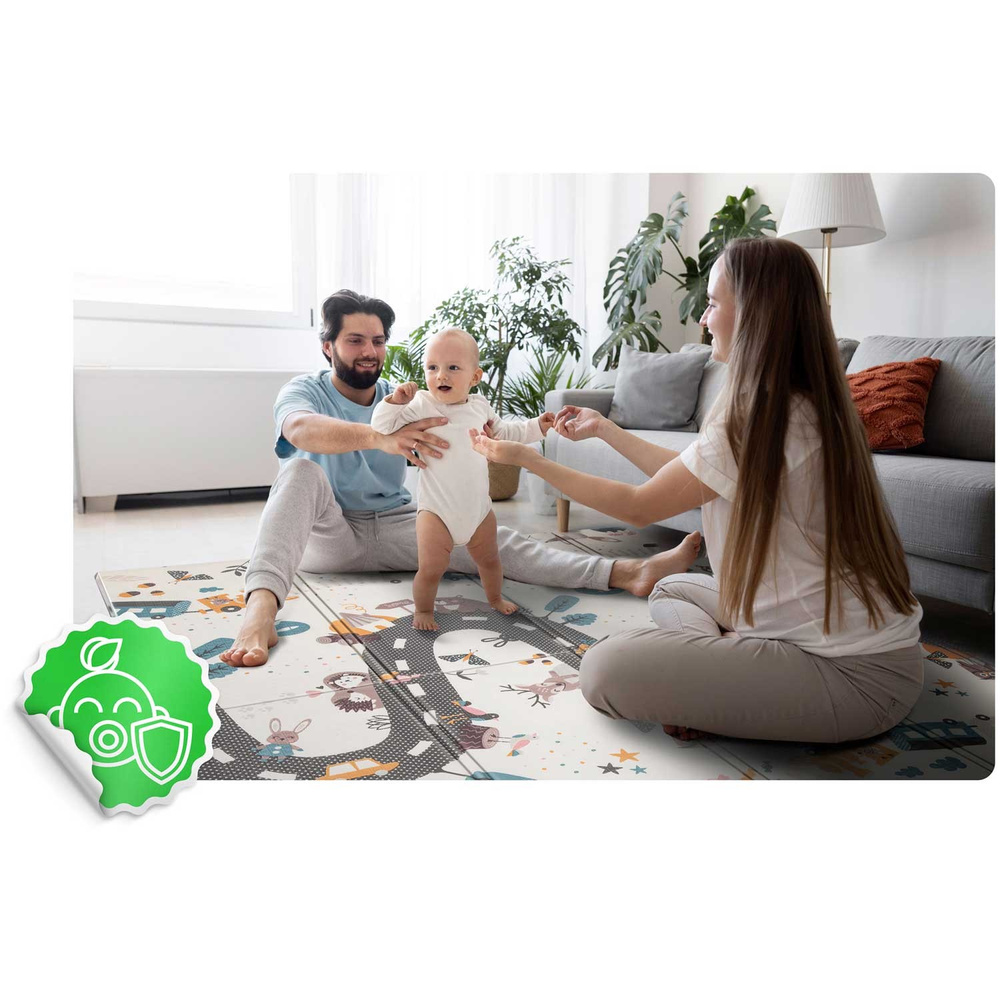 Ta wyjątkowa duża składana mata o wymiarze 200x150 cm, która ma wiele praktycznych zastosowań. Zapewni Twojemu dziecku komfort podczas zabawy oraz nauki raczkowania!