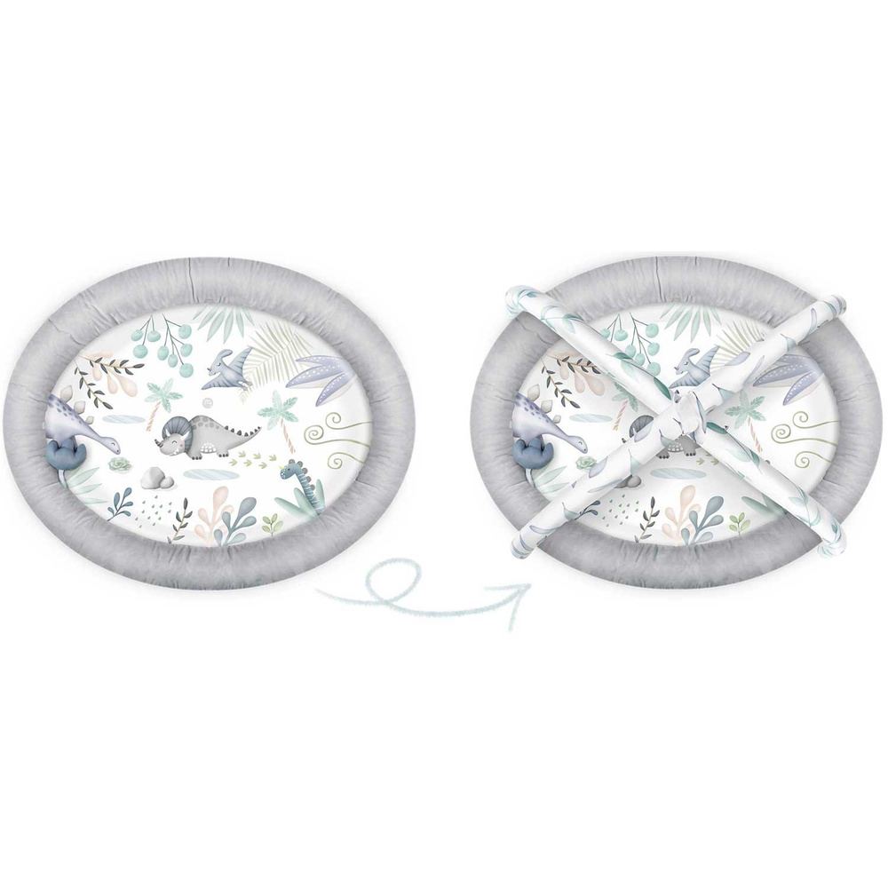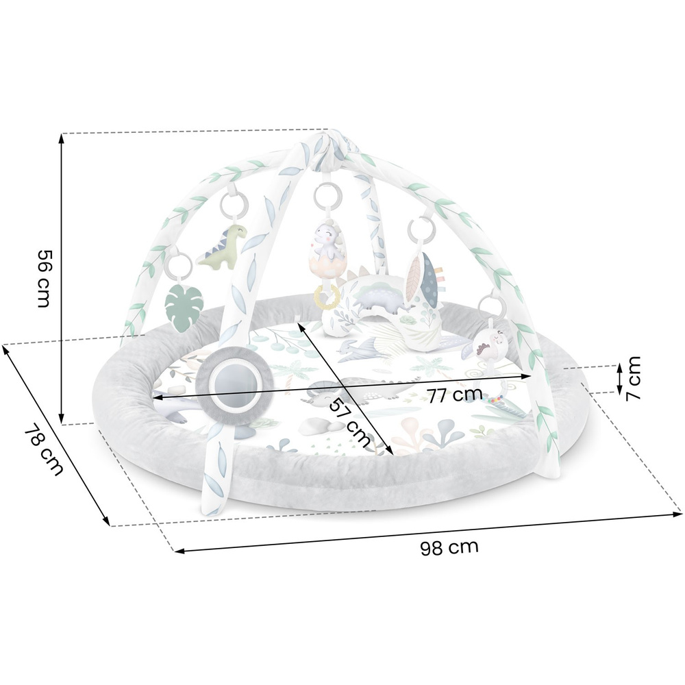 To właśnie dlatego do maty dołączamy multifunkcyjne zabawki, które możesz zwiesić na pałąkach — niech coś zagrzechocze, zadzwoni, a coś zaszeleści! Wśród zabawek jest nawet zabawka piszcząca — dinozaur i skamielina!