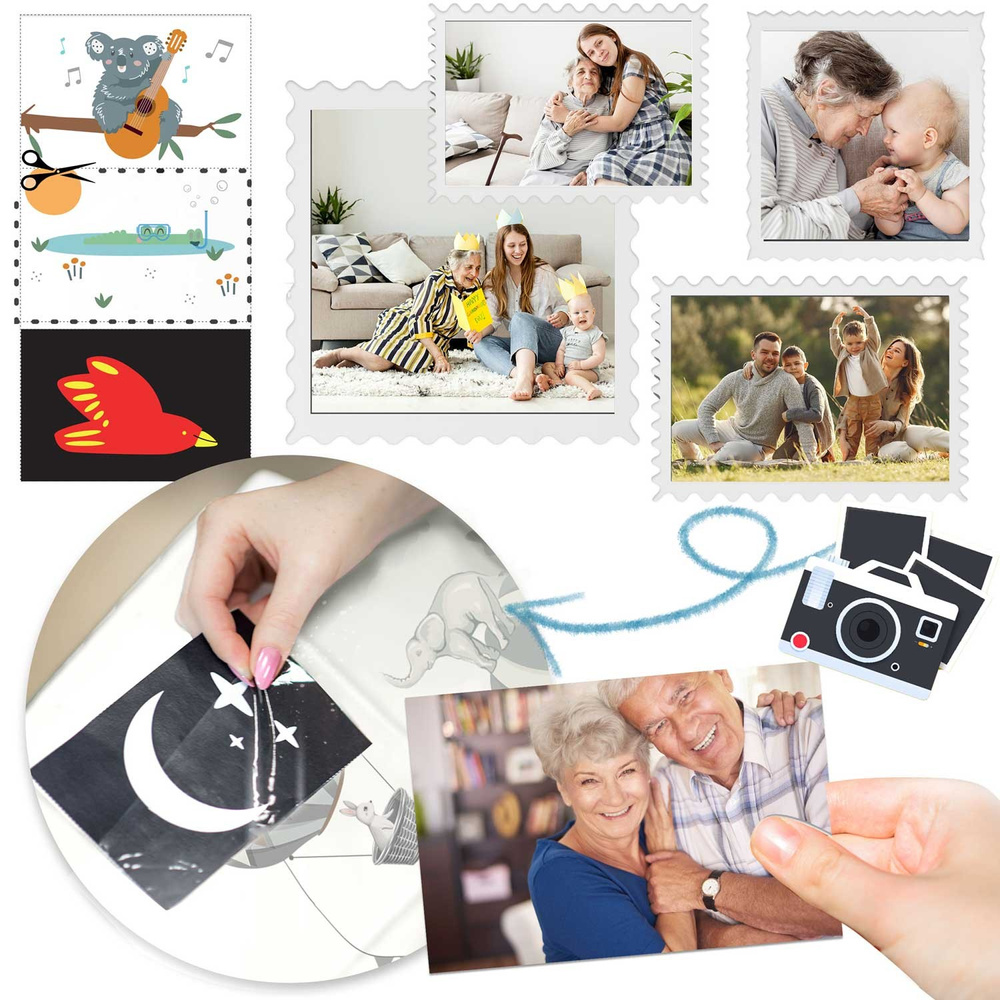Solidnie wszyte kieszonki w które wsuniesz zdjęcia, rysunki lub dowolne obrazki. W zestawie dostajesz 4 ilustracje, które możesz wyciąć z opakowania - ekologia i praktyczność w jednym.