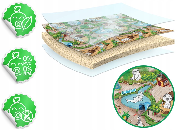 - Bezpieczeństwo - mata wykonana z pianki EVA, która jest bezpieczna dla dzieci skłonnych do alergii.