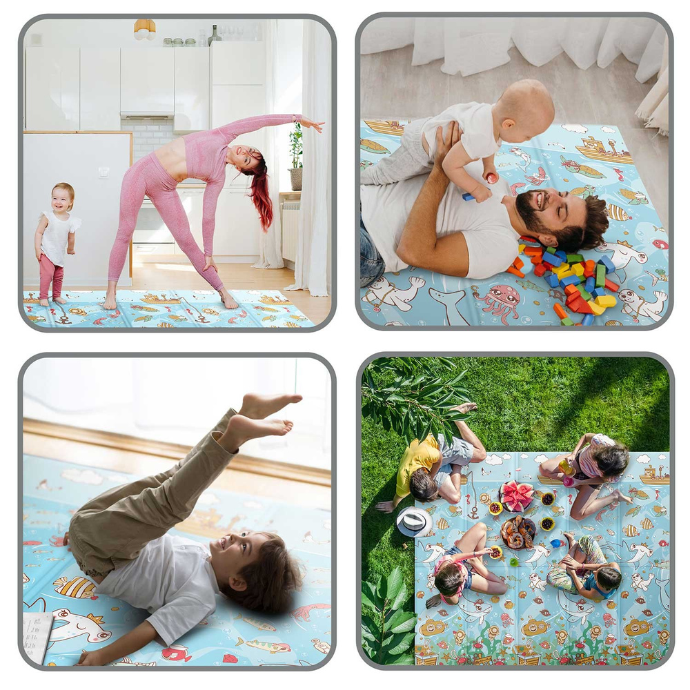 - Uniwersalne zastosowanie - Mata doskonale sprawdzi się nie tylko w pokoju dziecięcym, ale również na piknikach, podczas wspólnych ćwiczeń czy w trakcie nauki raczkowania i chodzenia.