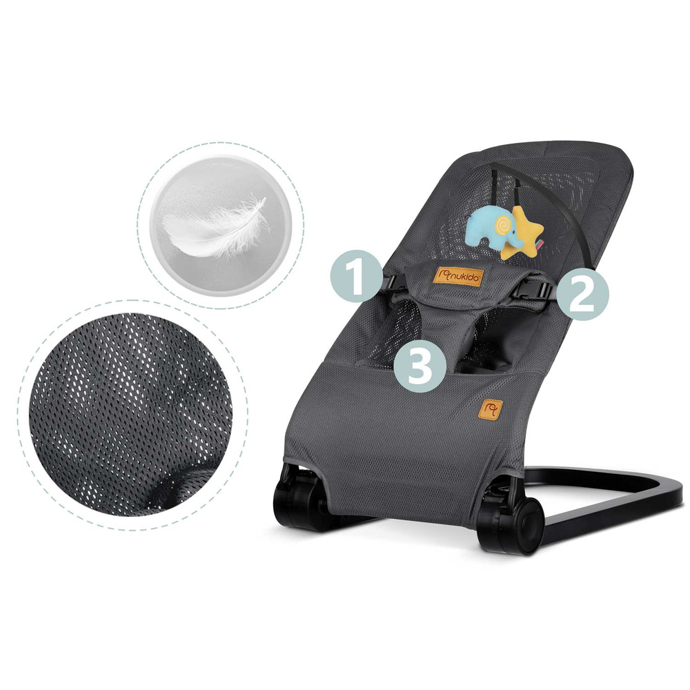 • 3 stopnie regulacji kąta nachylenia leżaczka: pozwoli ci na dostosowanie pozycji dziecka do jego preferencji.