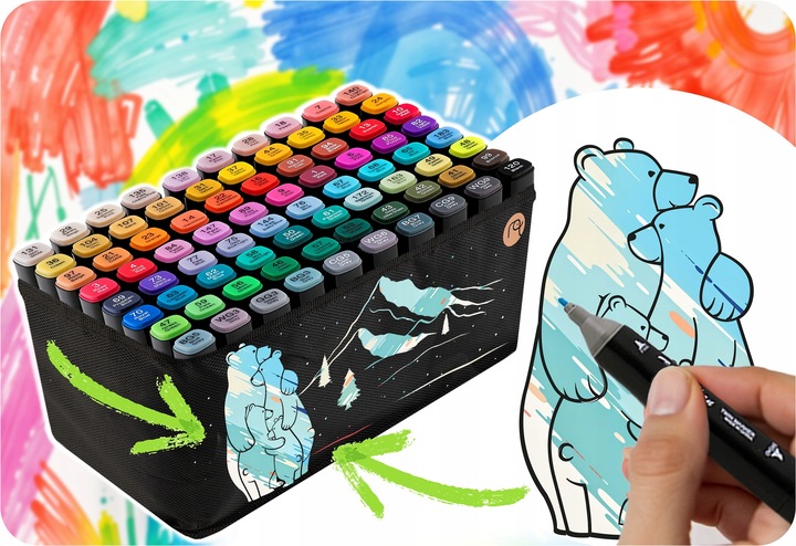 ZESTAW KREATYWNY — Markery alkoholowe z torbą 80 szt. + mata do malowania GRATIS