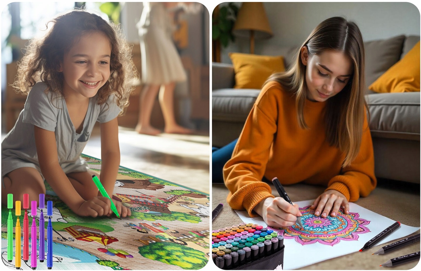 Pełna Paleta Możliwości – 80 Markerów permanentnych i mata do kolorowania z mazakami zmywalnymi!